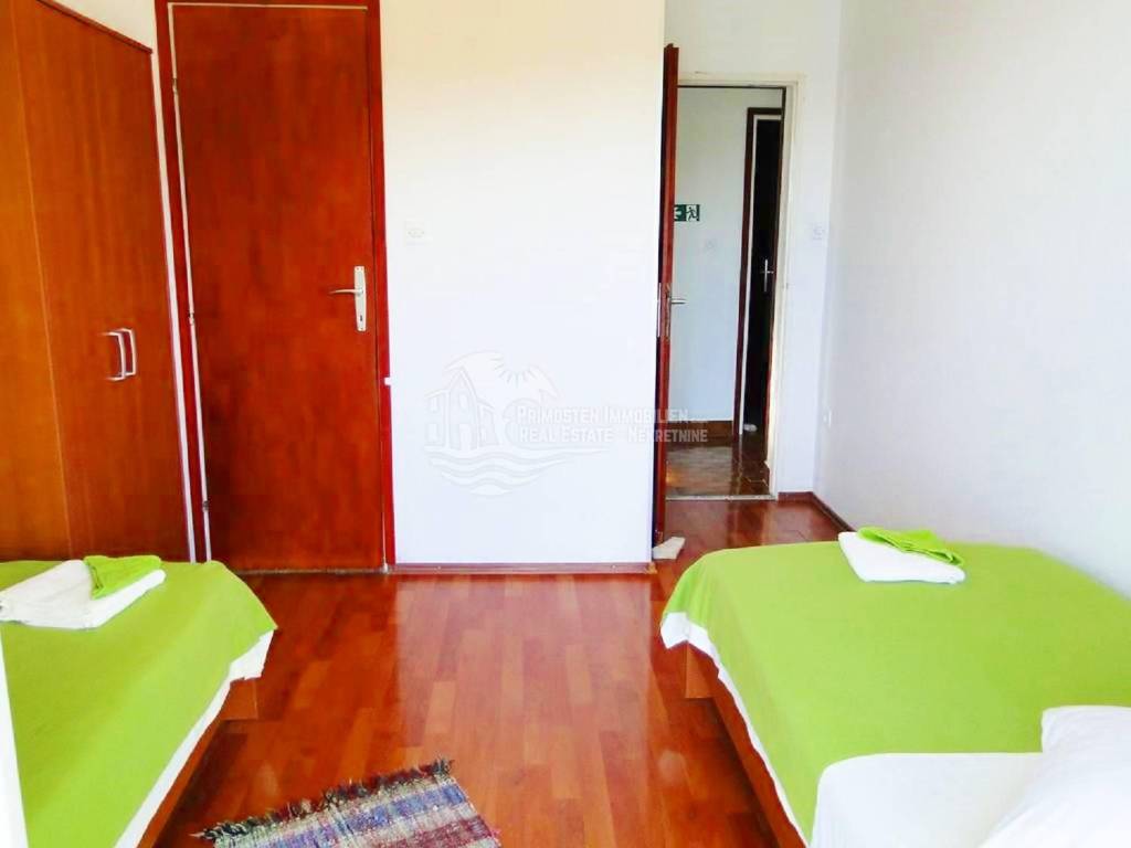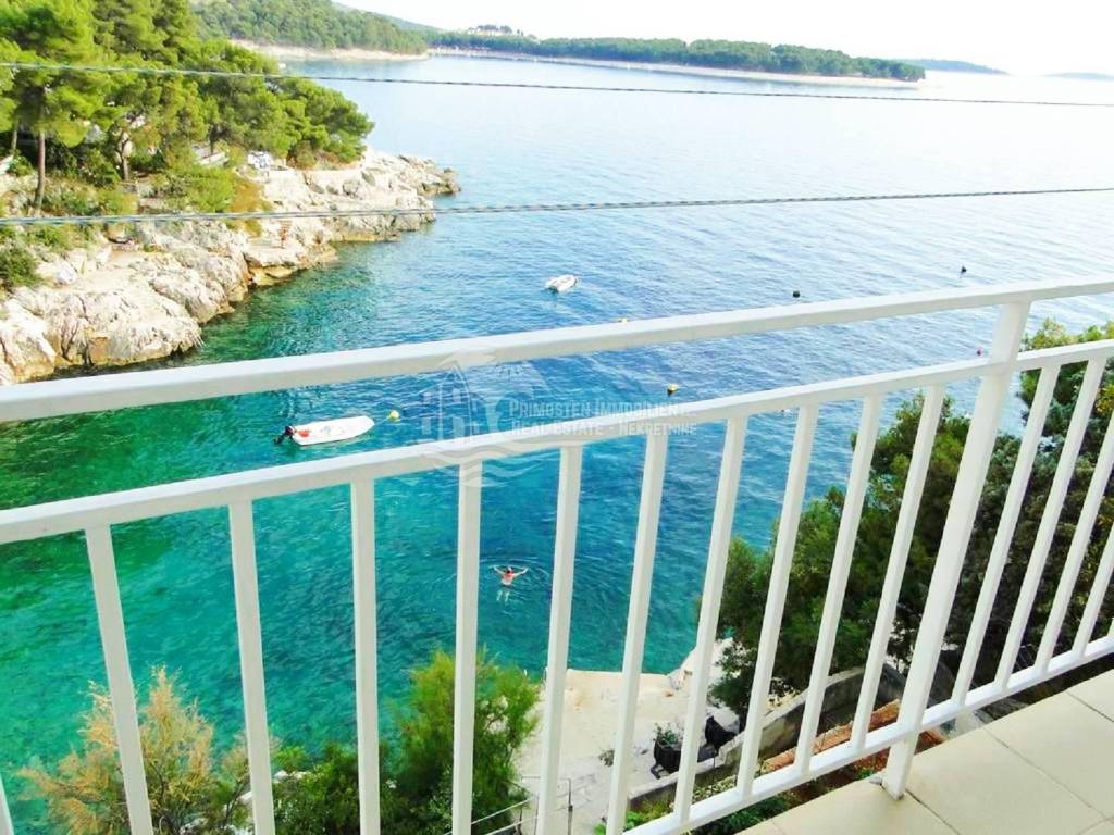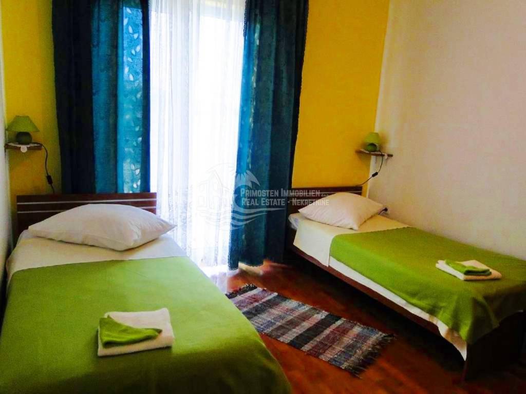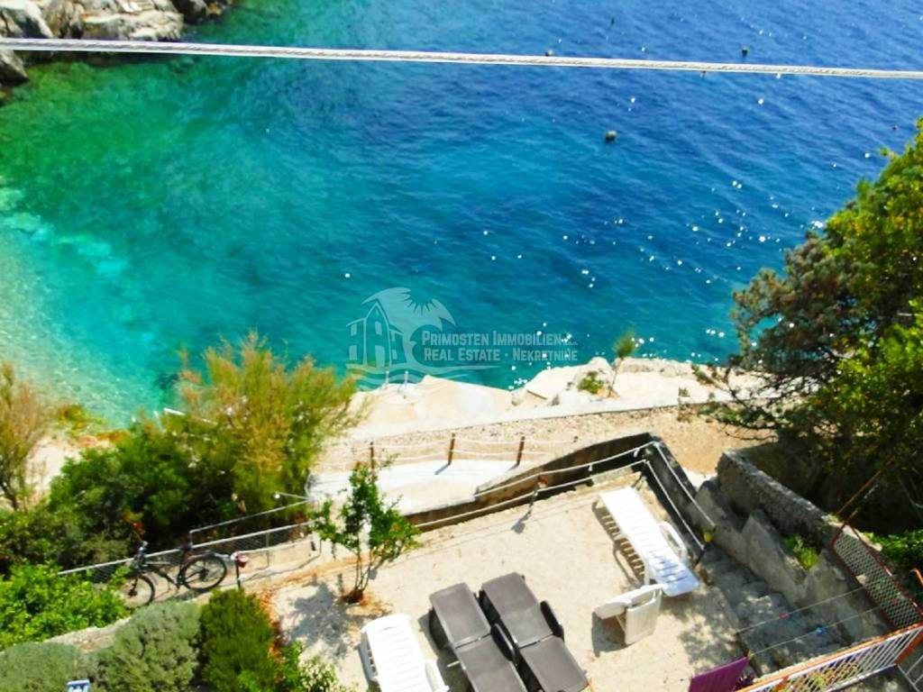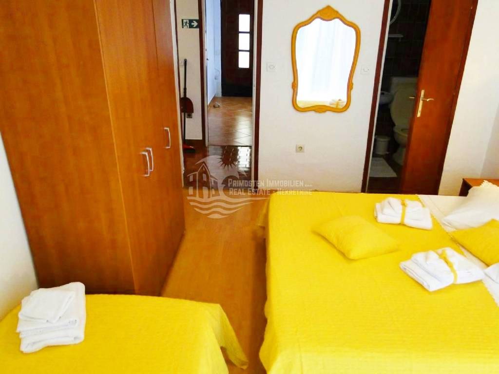Spacious apartment house, first row to the sea in Primosten, with living area 436 m2. The house consists of 5 apartments and has an infield of 358 m2. The house consists of a basement, ground floor, first and second floor. The basement has an area of ​​55 m2, and consists of a living room and kitchen, two bedrooms and a bathroom, one toilet, all connected by a large terrace. There are two more pantries included. Furthermore, the ground floor (115 m2) consists of a living room and kitchen, three bedrooms, a bathroom, two toilets, a terrace, and two pantries. The first floor of 98 m2 has two two-bedroom apartments (51 m2 and 47 m2), according to the following layout: living room, kitchen, two bedrooms, toilet, bathroom and large terrace. The second floor of 135 m2 consists of a living room and kitchen, three bedrooms and a bathroom, and is also followed by a large terrace. There are two more pantries. The price includes three parking spaces and a garage. The property is located in an excellent position by the sea, has a beautiful view of the sea and the Primosten peninsula and records an excellent seasonal occupancy when renting apartments. The apartments are fully air conditioned and maintained. With additional investment and renovation, the apartments can achieve a great rental price and generate a substantial annual income. Next to the house there is a beautiful promenade by the sea, and nearby there is a charming beach bar by the beach. The location allows for a true visual experience of the Mediterranean. Nearby is the town of Sibenik at a distance of 30 km, Split 50 km, and nearby restaurants and shops a 2-minute drive away.