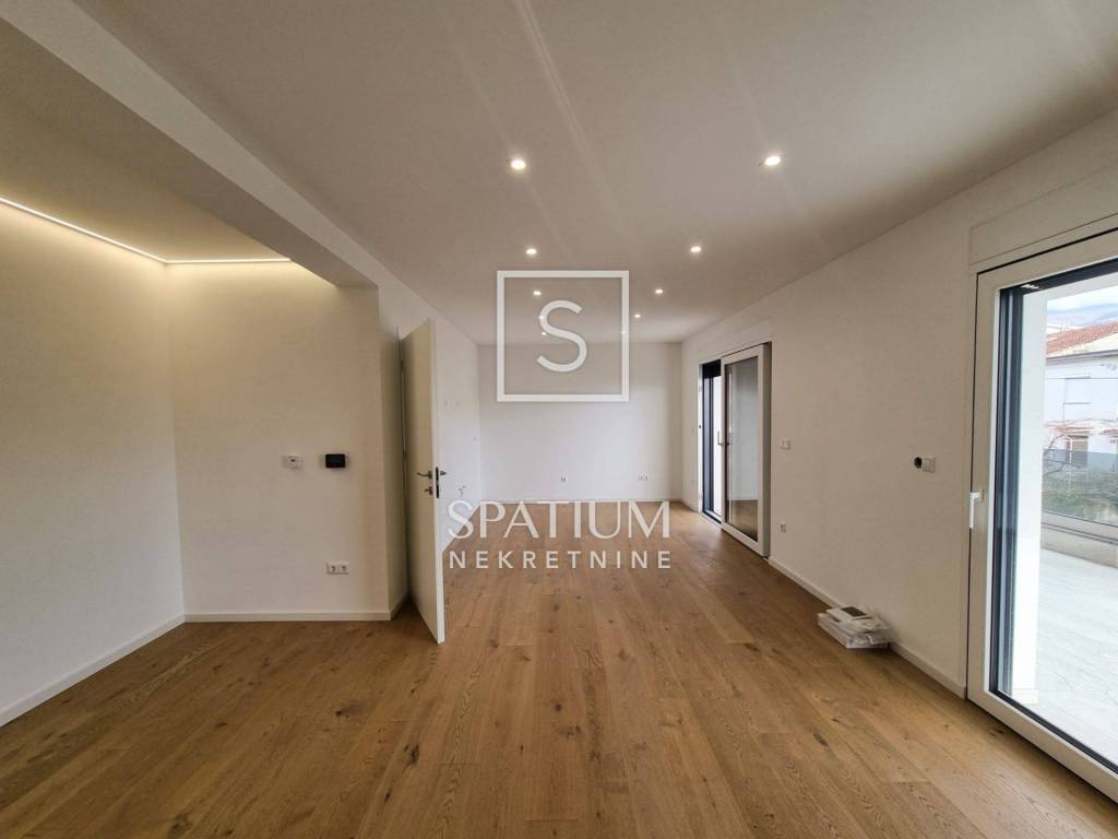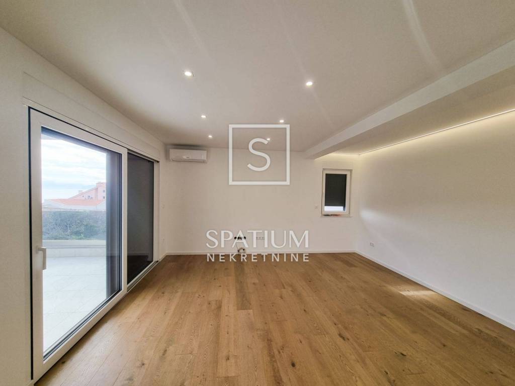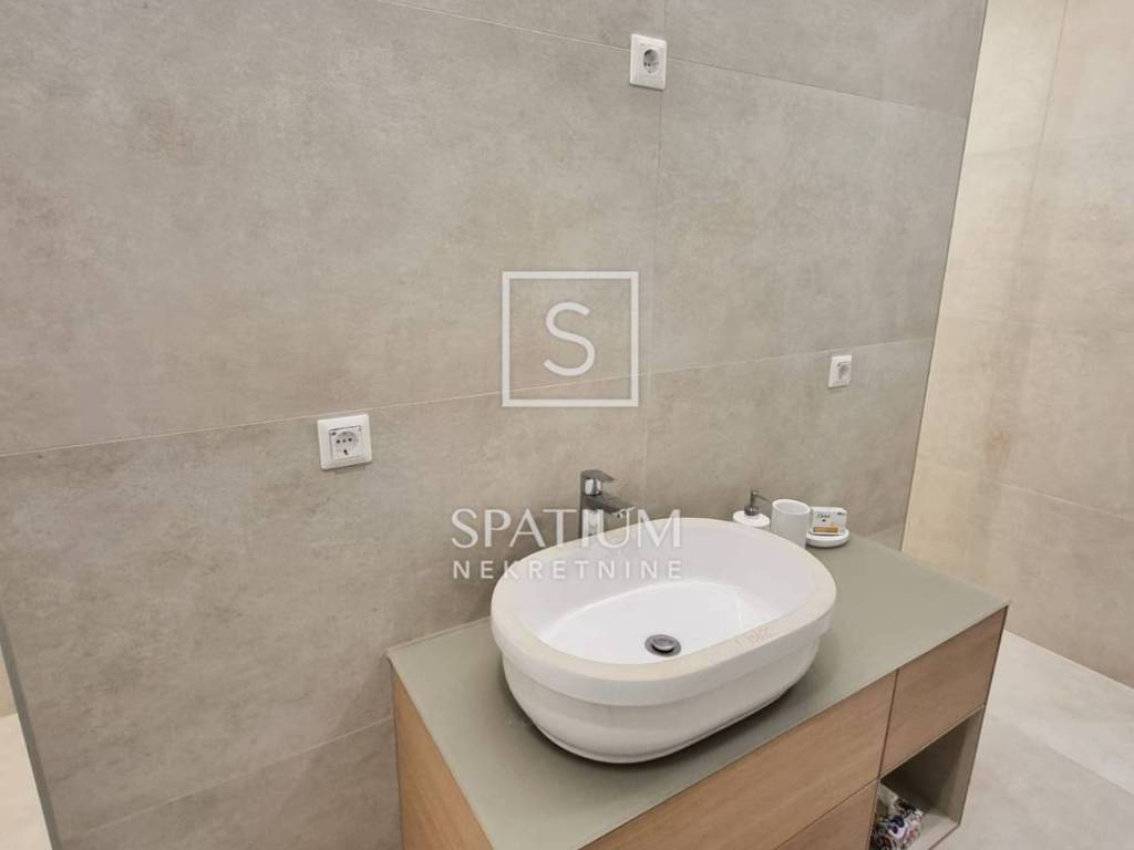 CRIKVENICA, we offer a modern detached house. Total area 350m2, consists of a basement, ground floor and first floor. Basement: spacious garage space for two vehicles. Ground floor: comfortable apartment with entrance hall, kitchen with dining area and open concept living room, bathroom, two bedrooms, one of which has its own bathroom, terrace. 1st floor: comfortable apartment as on the ground floor, with a spacious terrace and sea view. Within the beautifully landscaped and fenced garden there are courtyard terraces for socializing, Mediterranean plants, lawn and enough space for additional facilities such as a swimming pool. The property is built to the highest standards, high quality materials and equipment, ALU and PVC joinery, security doors, intercom, air conditioning, underfloor heating in all rooms, first class parquet, partially furnished. Suitable for year-round living or tourist investment.