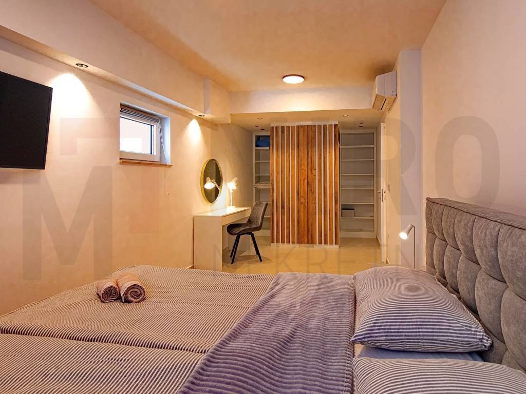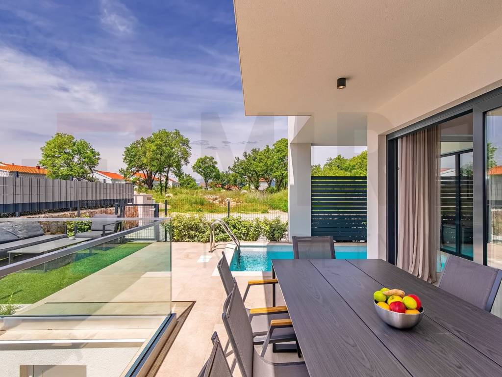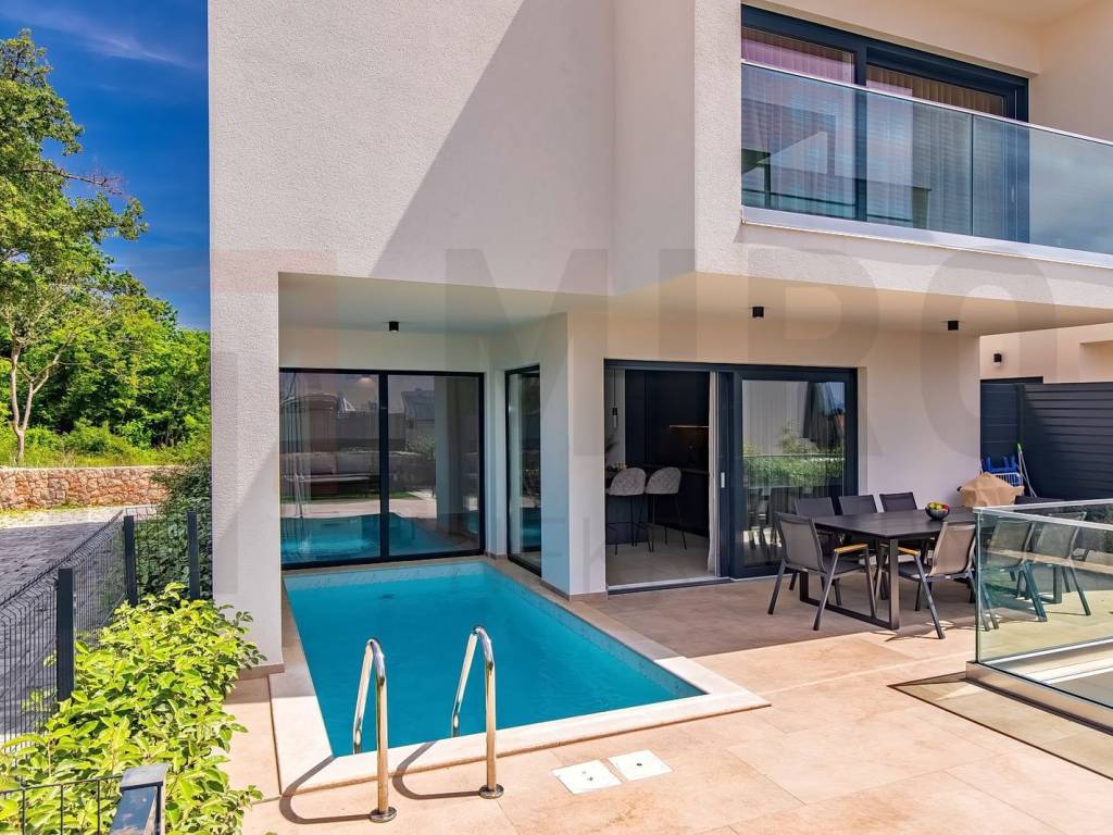 Island of Krk, Njivice, new comfortable two-story apartment with pool and garden. The total area of ​​the apartment is 92 m², it is spread over two floors: basement and ground floor. In the basement there are two bedrooms, of which the master bedroom has its own bathroom and wardrobe space, as well as an additional bathroom and a practical storage/laundry room. On the ground floor there is a living room consisting of a kitchen, a dining room and a living room, open to a terrace that it is partially covered, providing a perfect combination of indoor and outdoor space. Terrace with pool, with an incredible view of the sea. The apartment is modernly furnished, equipped with high-quality PVC joinery, high-quality ceramic floors, underfloor heating and additional air conditioning. The apartment comes with two secured parking spaces. The apartment is owned by a natural person and the buyer is obliged to pay real estate sales tax in the amount of 3%. The real estate seller guarantees proper ownership documentation. Visit us and find the square footage of your home!