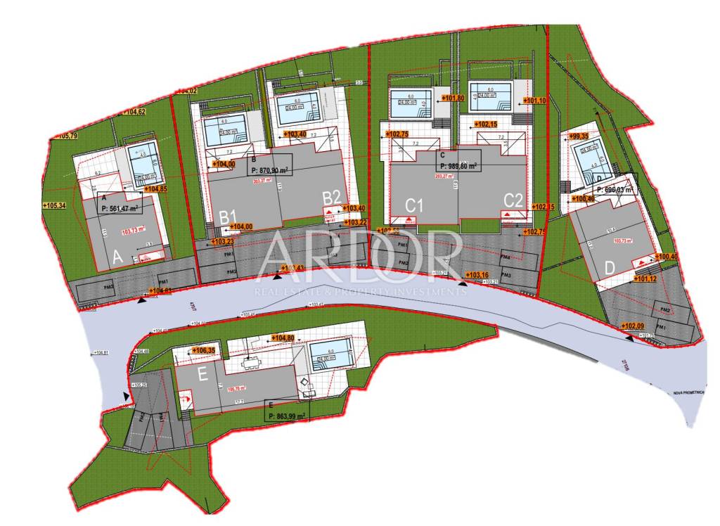 Posredujemo u prodaji građevinskog zemljišta za projekt za resort, koji je u postupku ishodovanja građevinske dozvole. Projekt je zamišljen kao resort od pet stambenih cjelina, od kojih su dvije dvojne, što čini ukupno sedam stambenih jedinica (villa) od kojih svaka ima svoj vlastiti bazen.