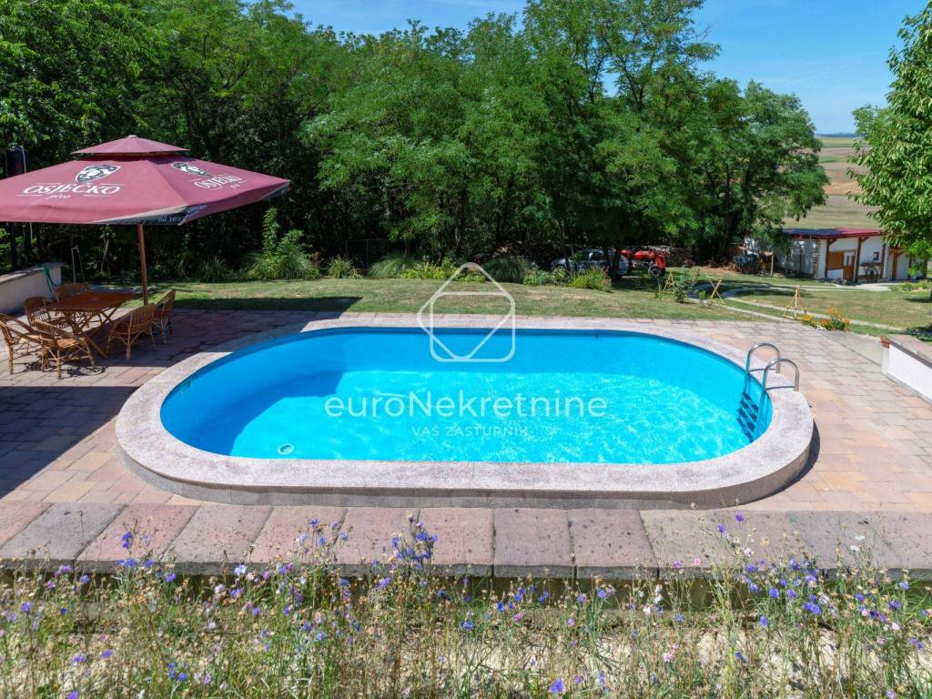 Ovo prostrano i vrijedno imanje ispunjava želje o životu u prirodnom okruženju. Kuća smještena na uzvisini nudi prekrasan pogled na krajolik, bazen za opuštanje, uređeni vrt, veliki voćnjak, veliku terasu za druženja, roštilj, dovoljno prostora za obitelj, prijatelje i goste.