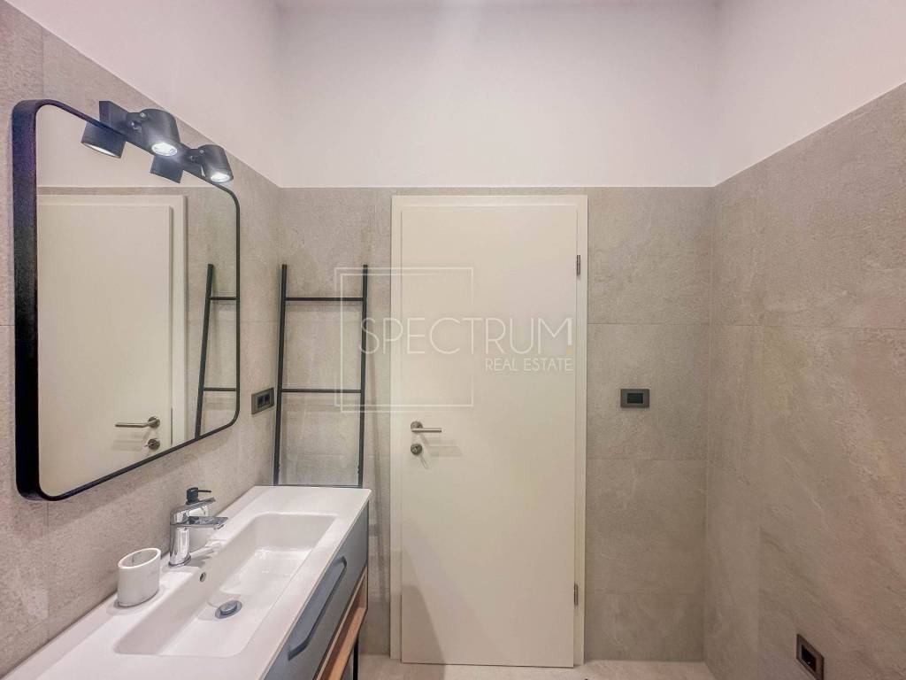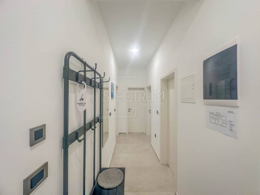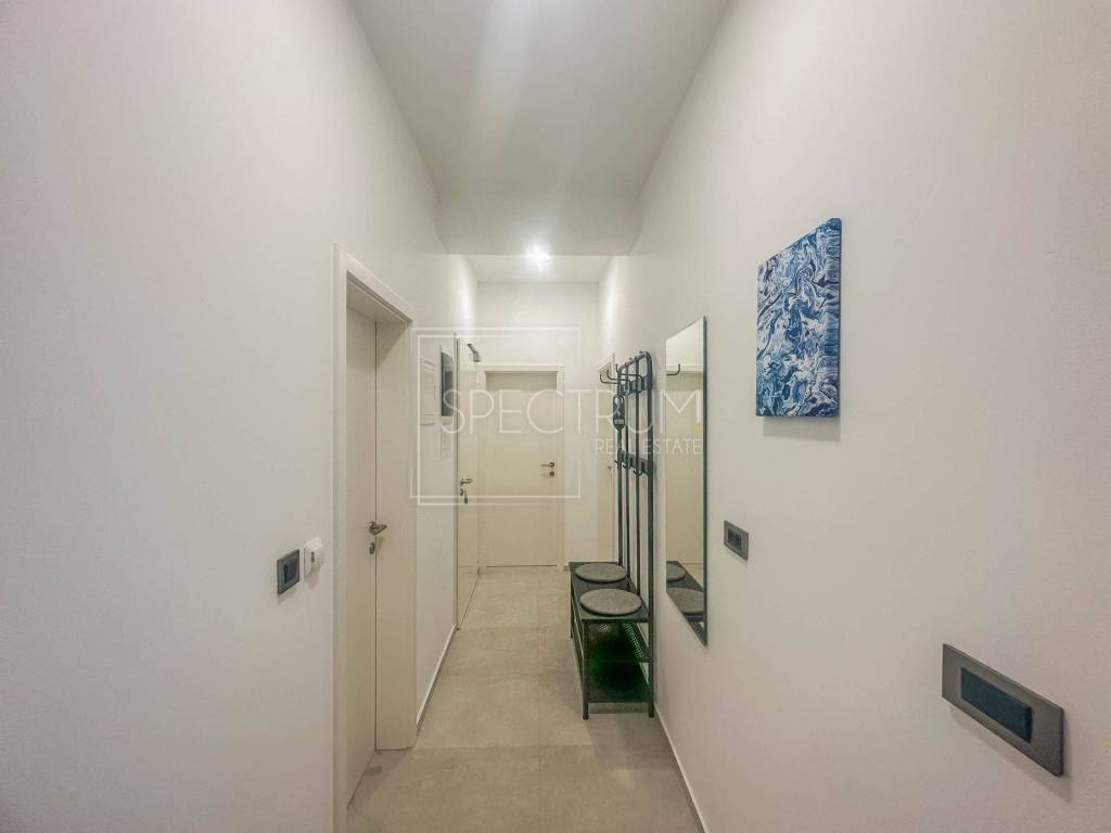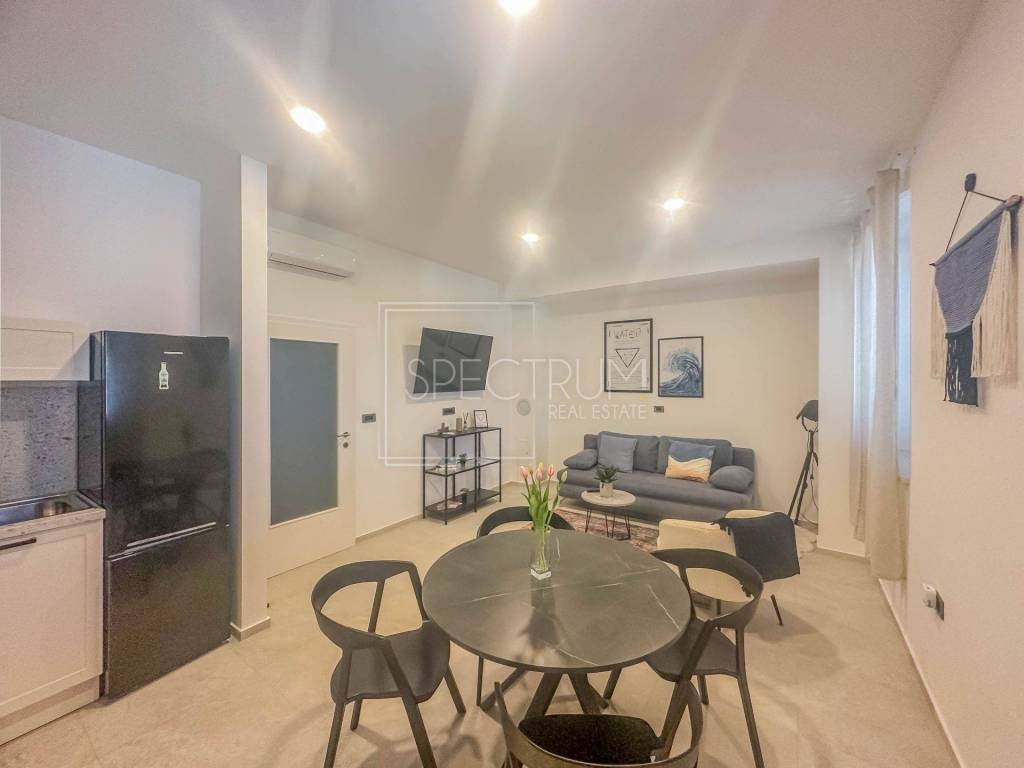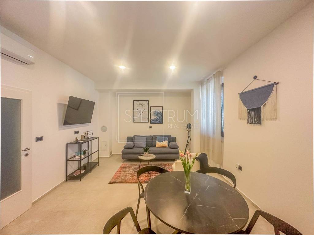 The apartment is located on the 1st floor of a smaller residential building. The area of ​​the apartment is 57.82 m2. The apartment consists of a spacious living room with kitchen and dining room, 2 bedrooms, hallway, bathroom, toilet and laundry room. The apartment offers a view of the sea. The apartment is heated by air conditioning, underfloor heating in the bathroom, and there is also the possibility of installing a wood stove. The apartment was completely renovated last year. The apartment is for sale fully equipped and furnished.