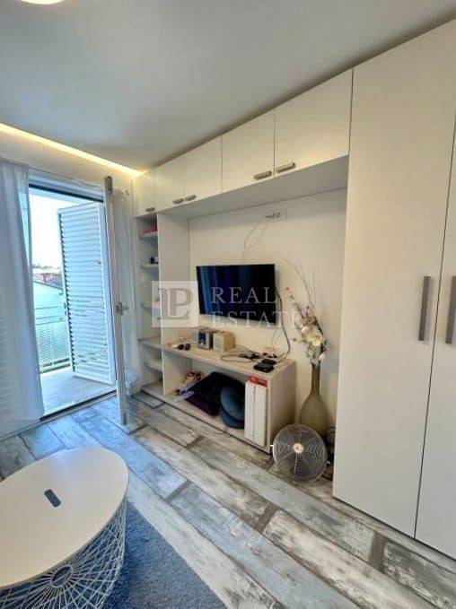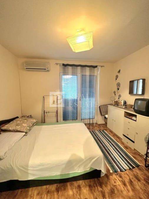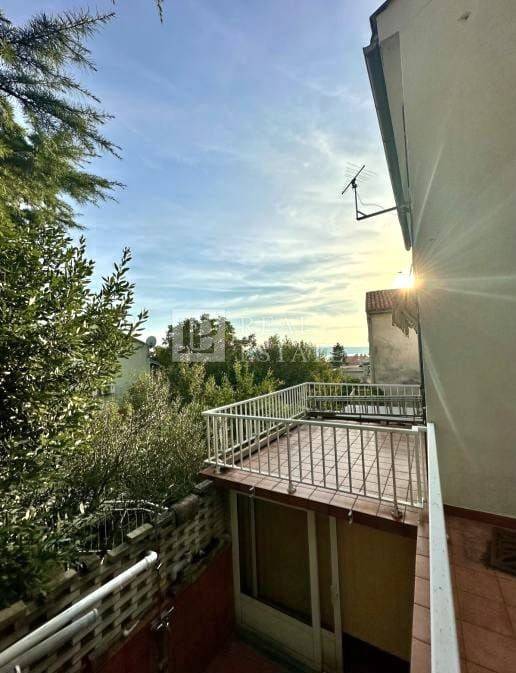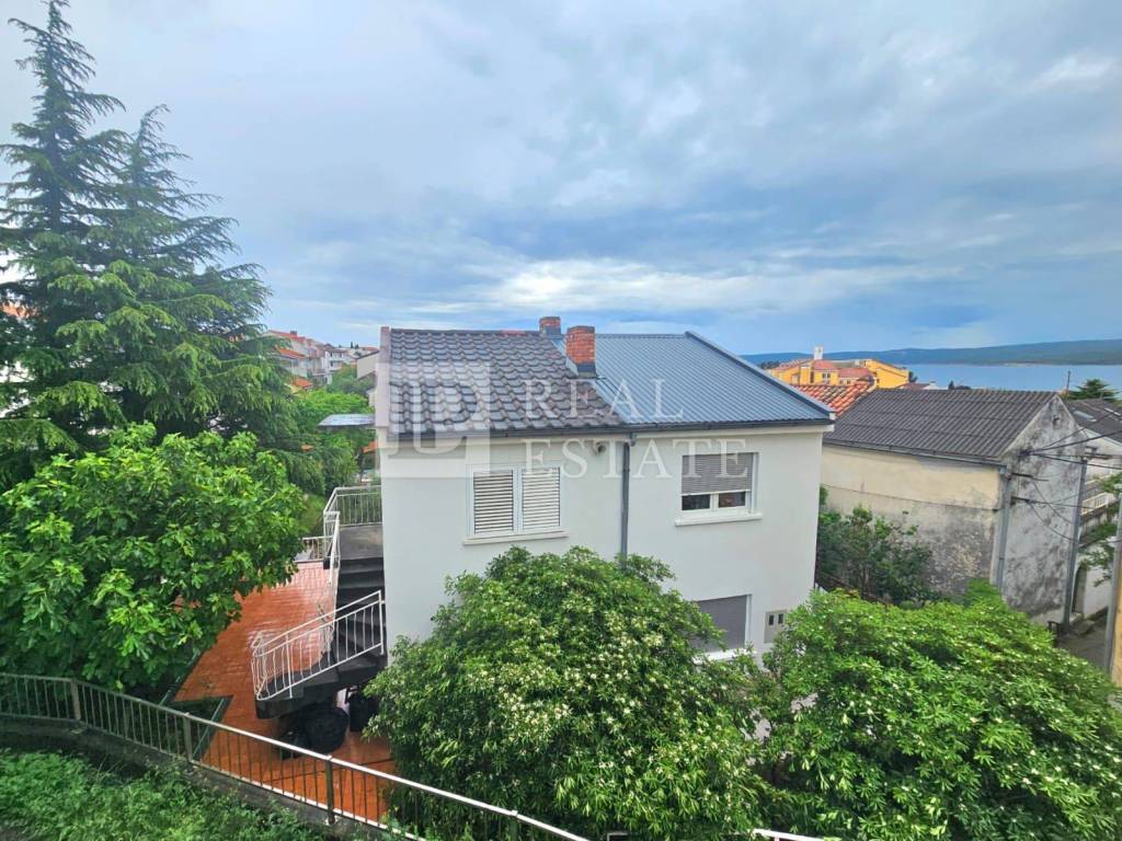 The house is spread over three floors. On the lower floor there is a kitchen, dining room, living room, toilet and storage room. On the middle floor there are two bedrooms, one of which has access to the terrace, and a bathroom. On the upper floor there is a fully furnished studio apartment with a balcony overlooking the sea.