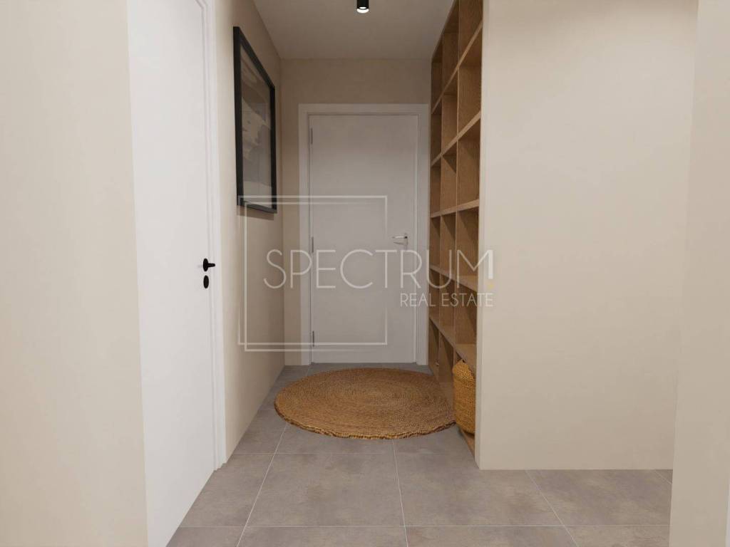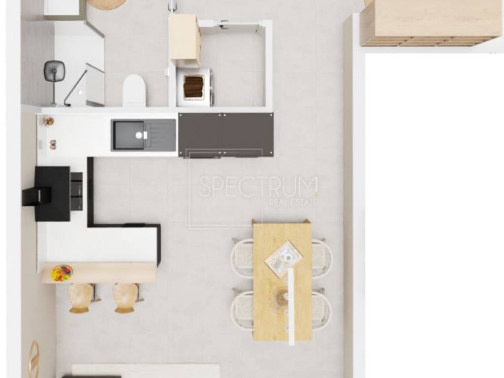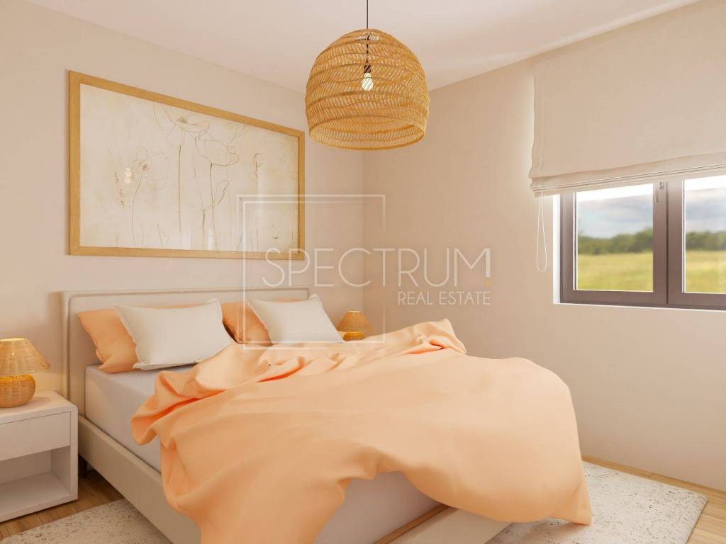 The apartment is located on the 1st floor of a newly built building. The area of ​​the apartment is 68.84 m2. The apartment consists of an open space living room with a kitchen and a dining room, 2 bedrooms, a bathroom, a hallway, a storage room and a covered balcony, ideal for enjoyment. The balcony is accessed from the living room. The apartment also owns a storage room located on the ground floor of the building. The apartment is heated by air conditioning and floor heating in the bathroom. Very high-quality materials, porotherm bricks, sanitary facilities, floors and first-class carpentry were used in the construction. The building has an elevator.