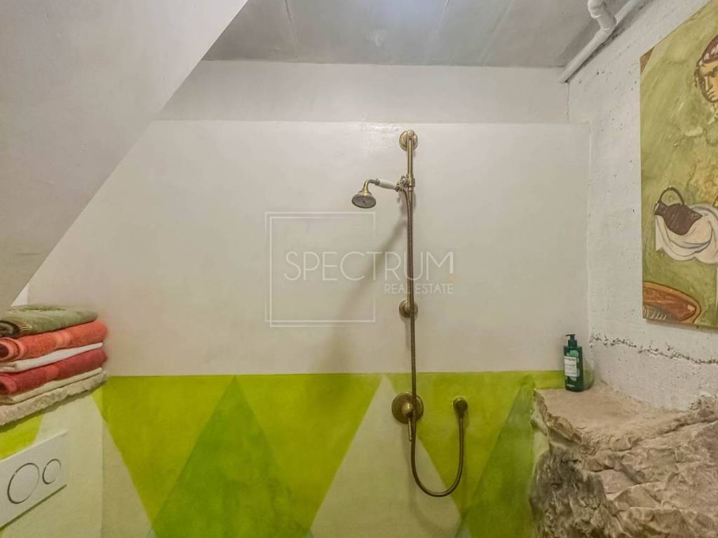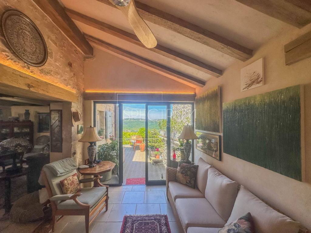 The house extends over 3 floors, and the total area of the house is 122 m2. On the ground floor of the house there is a living room, dining room, kitchen and bathroom. Stairs lead to the gallery where there is a bedroom, bathroom and additional space that can be used as a study or library. From the ground floor, it descends to the lower floor, where there is another room, a bathroom, a technical room and a storage room. The house is equipped with quality and unique furniture. It is a completely renovated autochthonous Istrian stone house in which the autochthonous stone elements have been kept to protect the cultural heritage, complemented by modern style furniture. The house is heated by means of electric central heating, air conditioning and a fireplace. Installations for the security system of the house were carried out.