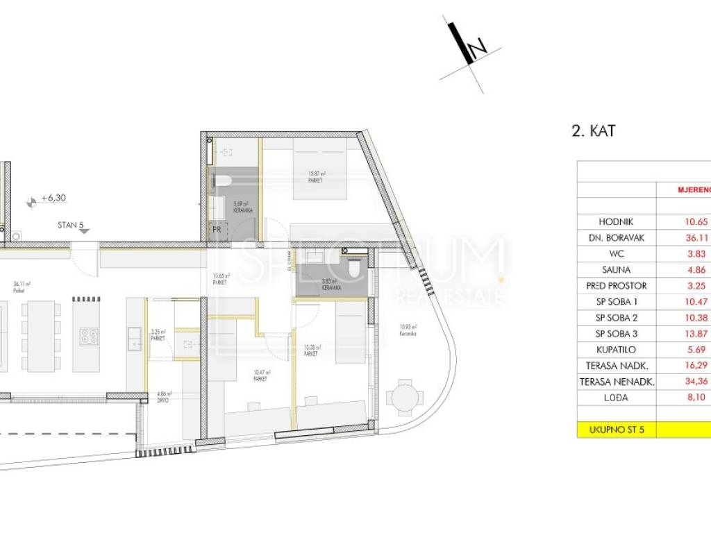 The apartment is located on the 2nd floor of a newly built residential building. The area of ​​the apartment is 121.91 m2. The apartment consists of an open space living room with kitchen and dining room, 3 bedrooms, 2 bathrooms, hallway, sauna, terrace and loggia. The apartment offers a view of nature and the sea. The apartment is heated by underfloor heating with a heat pump and air conditioning. Due to its size, the apartment provides comfort and convenience. The apartment is built with high-quality materials, such as floors, sanitary ware, ALU carpentry, security doors. The building also has an elevator and surveillance cameras. The apartment also has a parking space with an electric connection for charging electric vehicles.