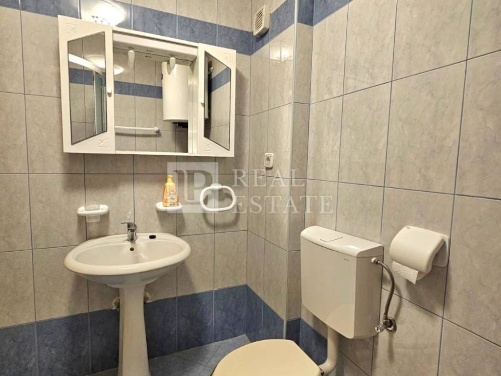 An external staircase leads to the first floor where there are two one-bedroom apartments. The apartments have separate entrances, and it is possible to connect them into one larger apartment of 100 m2 by opening the partition wall between the apartments. Both apartments consist of one spacious bedroom, a kitchen with a dining room, a living room, a bathroom and a terrace with an open view of the sea.