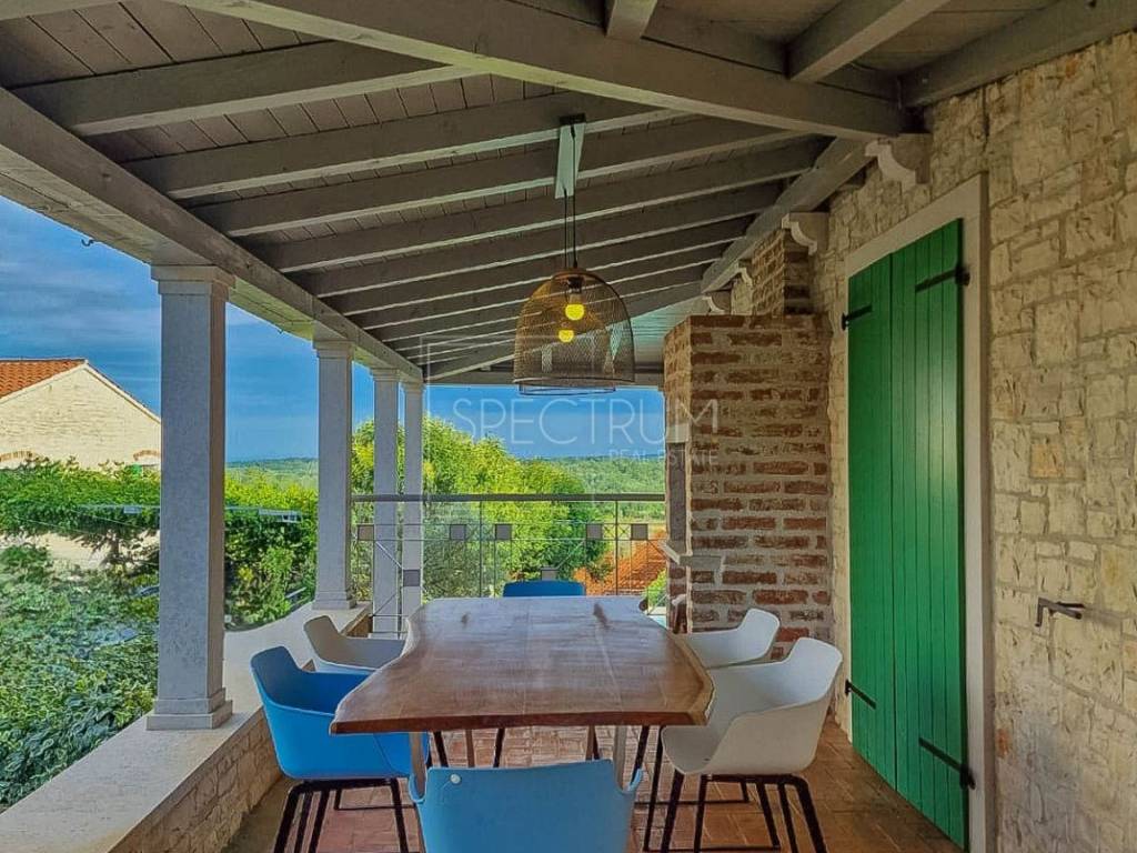 A stone villa with a sea view is for sale in a quiet location near Vižinada.