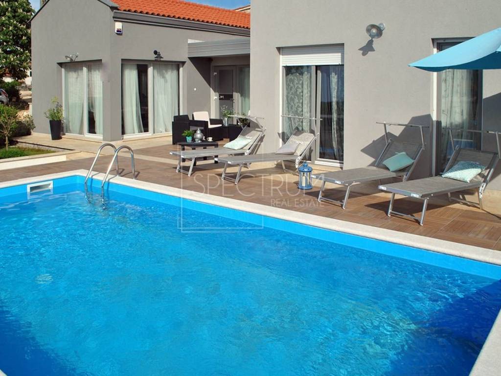 Since it is a uniquely designed single-storey house with a swimming pool not far from Poreč, the house is ideal for a quiet family life, vacation, but also for continuing the established tourist rental business.