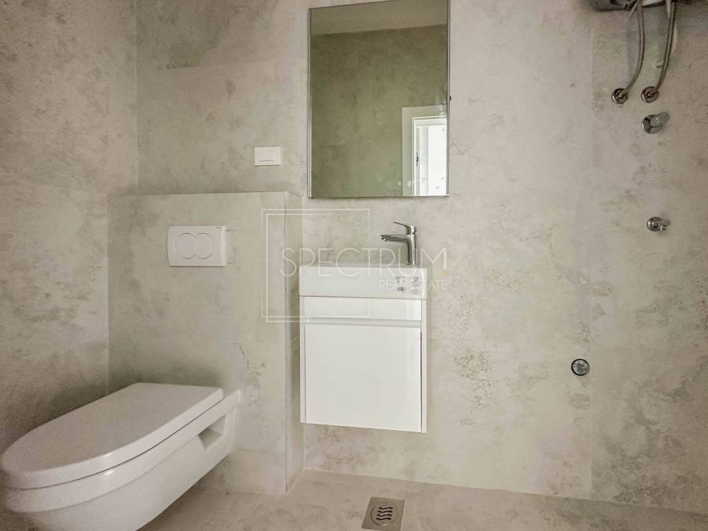 The apartment is heated by electric underfloor heating, and the first phase of installing air conditioning has been completed. The apartment is being sold in a turnkey phase (finished floors and sanitary facilities, without furniture). High-quality materials were used in the construction, and the joinery is three-layer PVC.