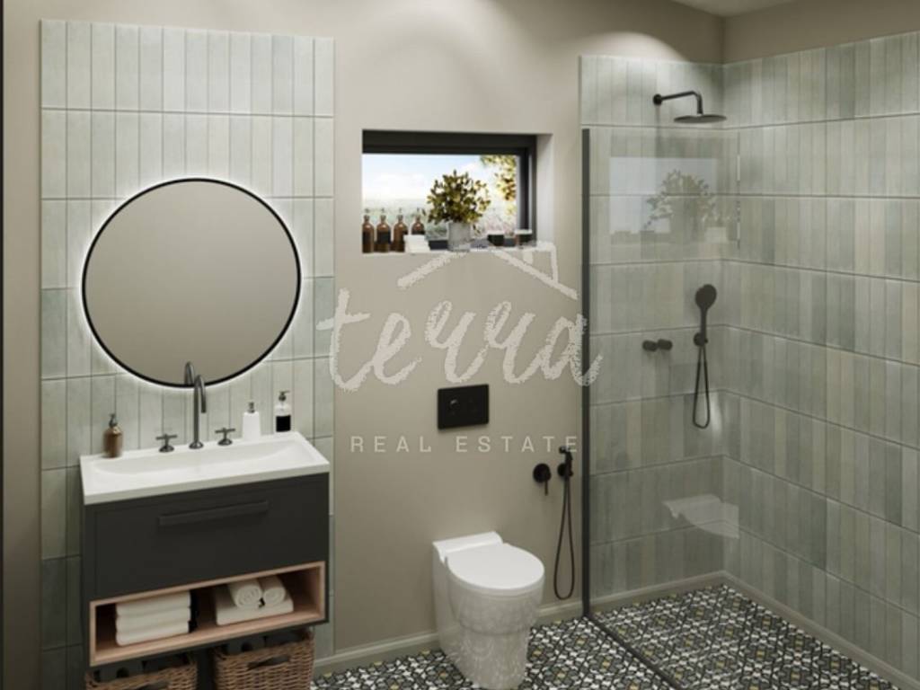 On the ground floor there is a spacious living room, kitchen and dining room, bedroom with bathroom, pantry, storage room and toilet, and access to the terrace and pool. The hallway leads to the first floor, where there are two spacious bedrooms, each with its own bathroom and terrace.