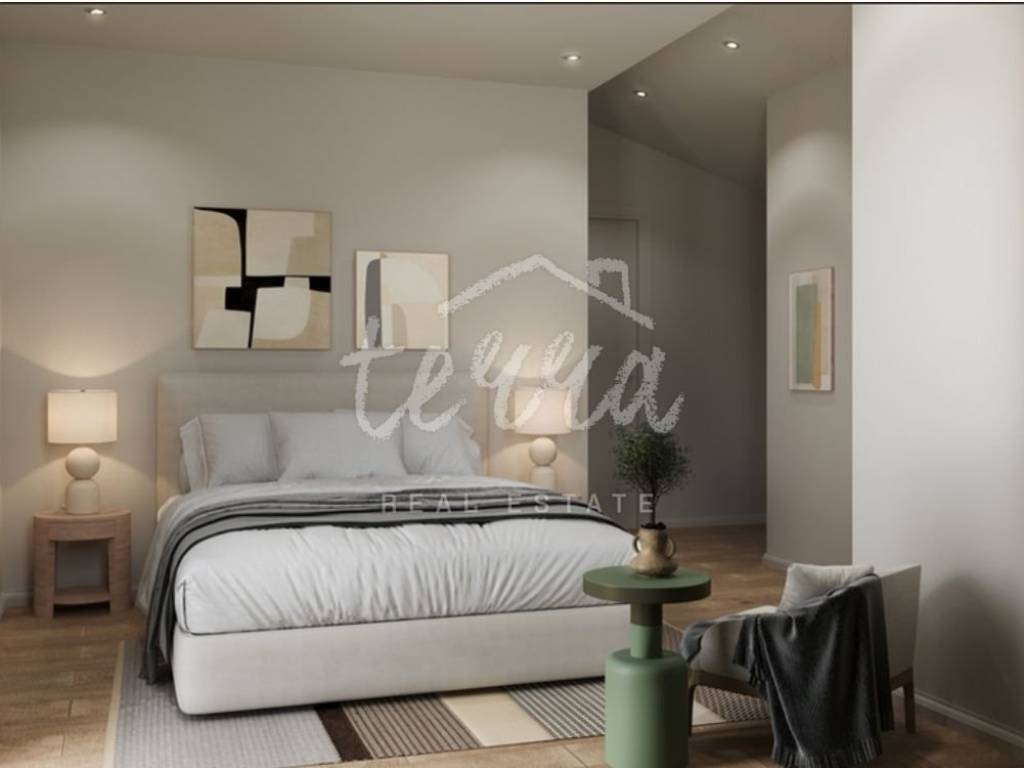 The staircase leads to the first floor, where there are two spacious bedrooms, each with its own bathroom, and a terrace.