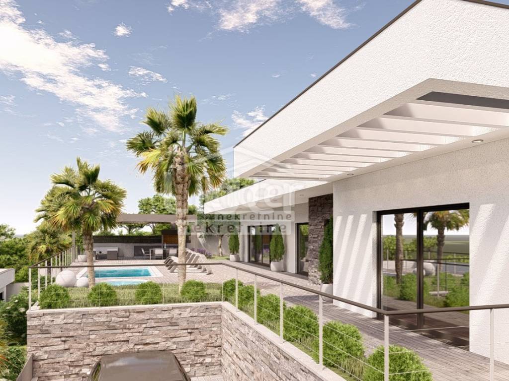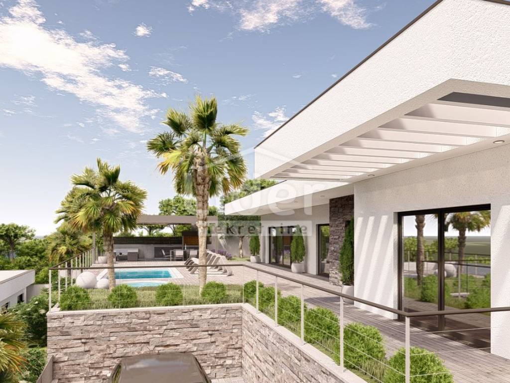A new, modern villa of 228 m2 with swimming pool, in an excellent location with a unique, open sea view.