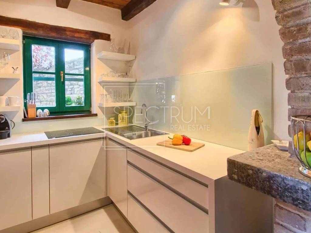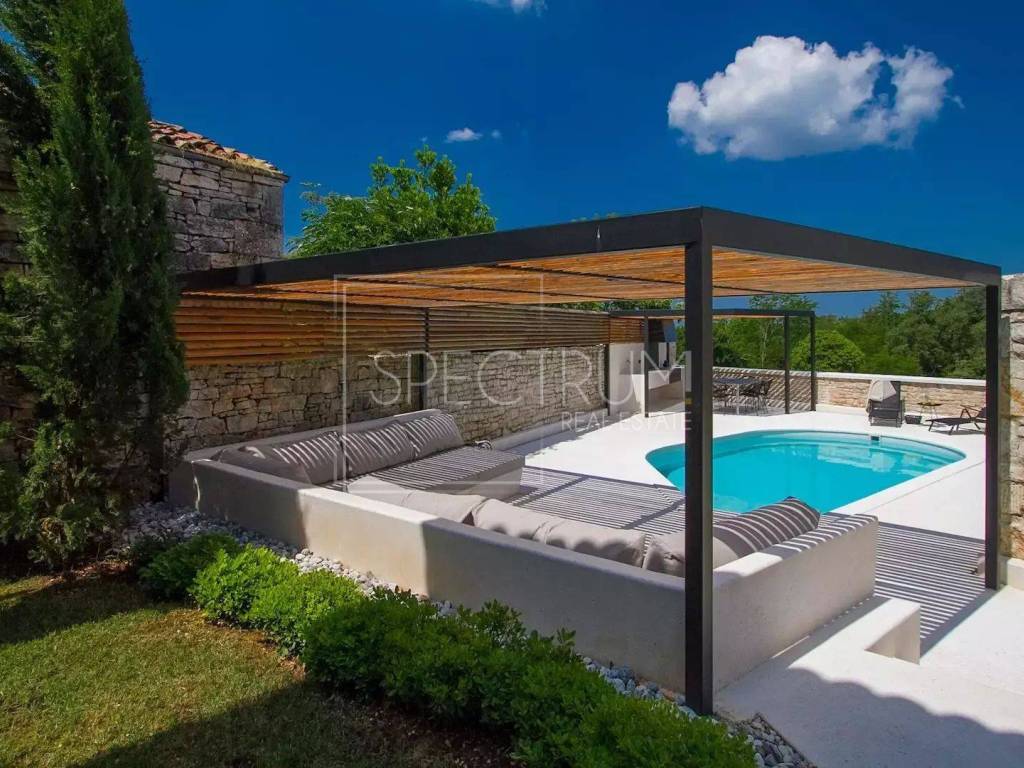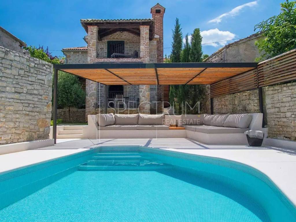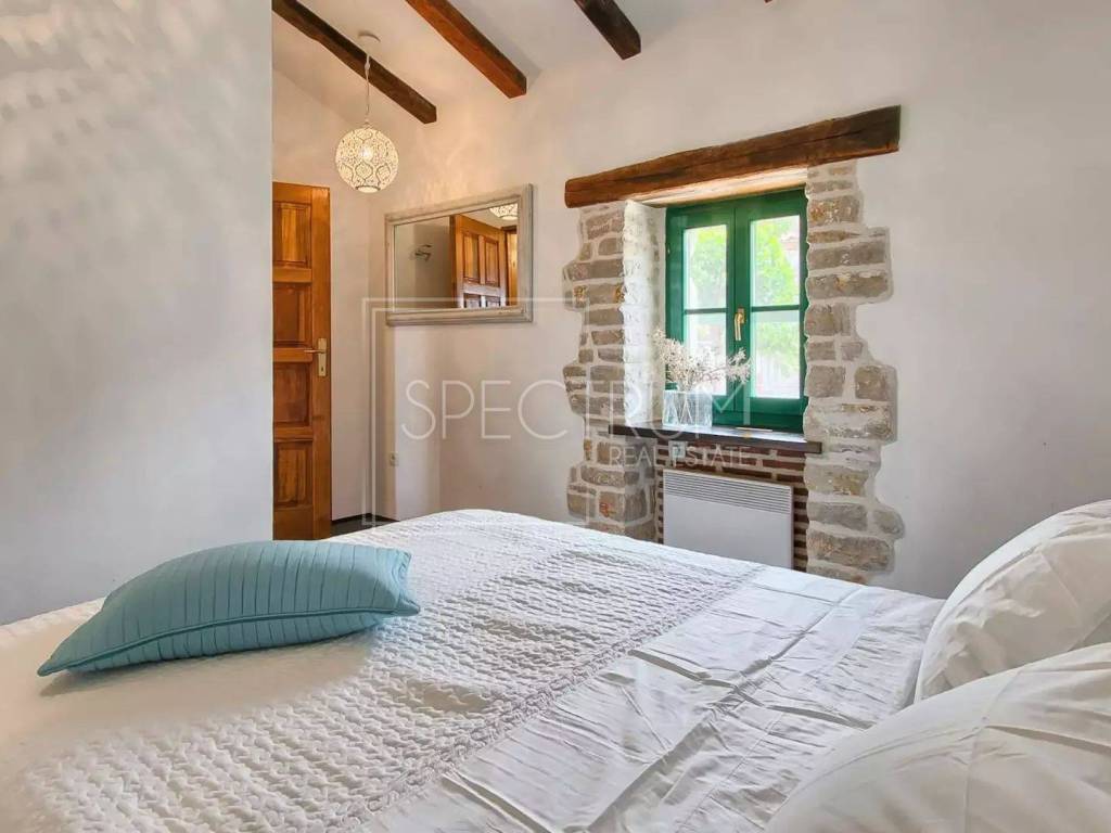 A renovated stone house with a swimming pool is for sale in a quiet location near Tinjan.