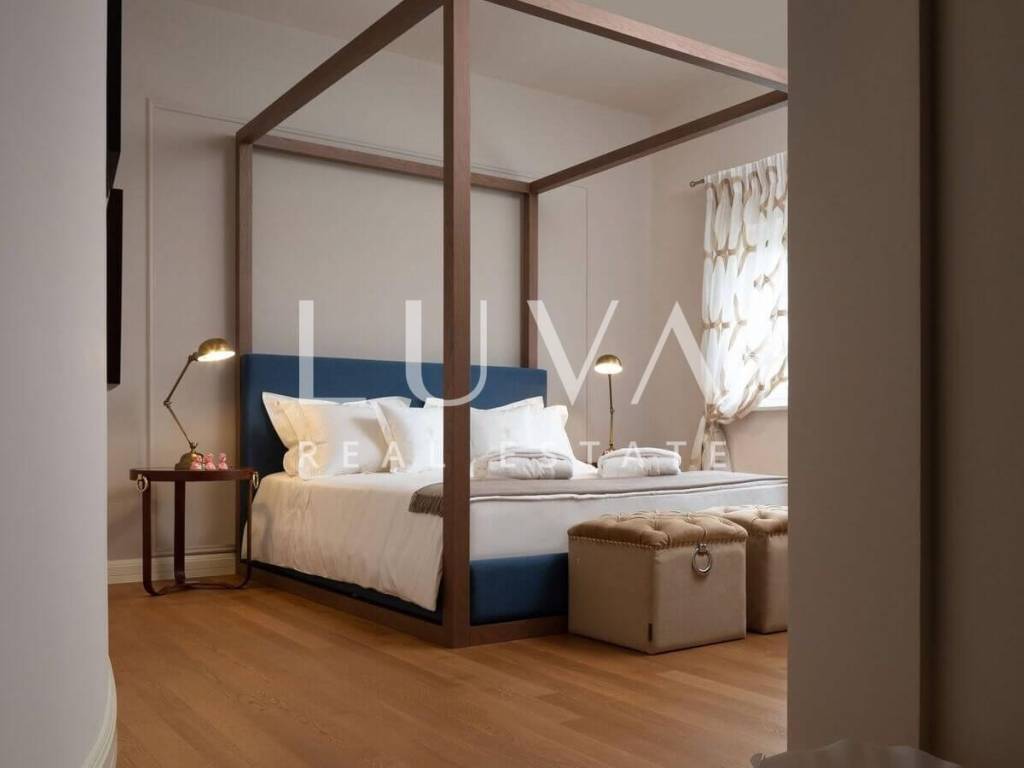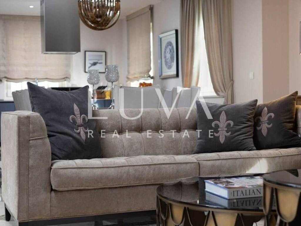 Built in 2018, the villa spans 287 m² across two floors, featuring a classic elegant design both inside and out. The ground floor houses a fully equipped kitchen and a spacious living room with access to a covered terrace, where you'll find a barbecue and a large dining table. In front of the terrace is an outdoor pool surrounded by sun loungers. In addition to the living room, the villa has 4 bedrooms, each with its own bathroom. This luxury villa, like the others in the complex, is currently used for tourist rentals and presents a good investment opportunity in Istrian tourism.