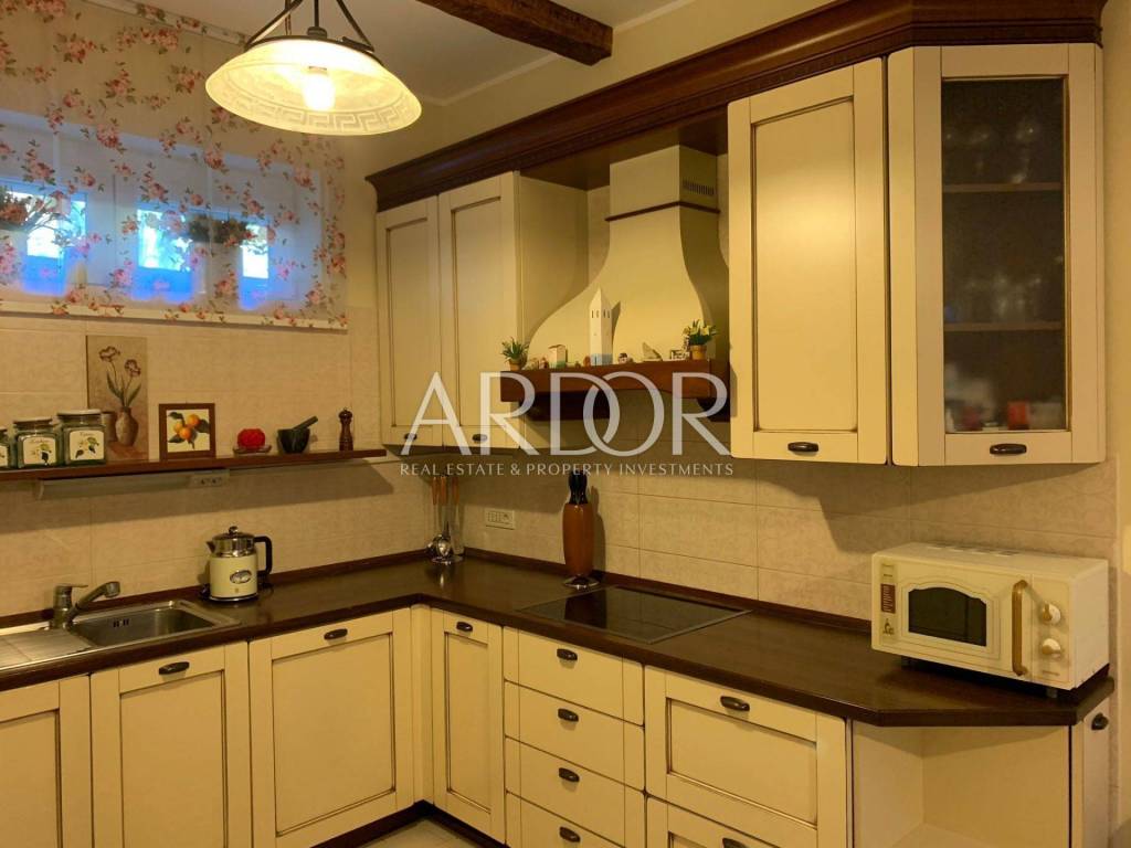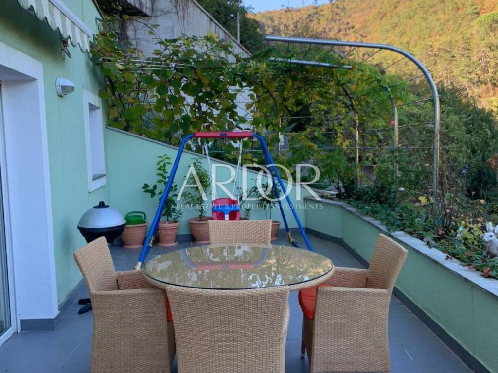 It is in one of these attractive villas in a unique position is an apartment with a view of the greenery, hidden from view. It is a family apartment of 72.66 m2, which is larger and more comfortable in nature and has over 112 m2 with the associated premises. This three-bedroom apartment with an open space living room has a spacious terrace facing south, which provides a great source of light and heat. The apartment is equipped with beautiful custom-made furniture which further emphasizes its comfort and charm. It also has a sauna with an additional bathroom. There is an elevator in the building, and the apartment has a parking space in the garage, two outdoor parking spaces and a woodshed. It has access from two sides, due to the specific slopes of the terrain, the apartment is located below road level, which provides additional peace and quiet. Located in a quiet location, just minutes from the center of Opatija, central beaches and the center of all events, the apartment is a great opportunity.