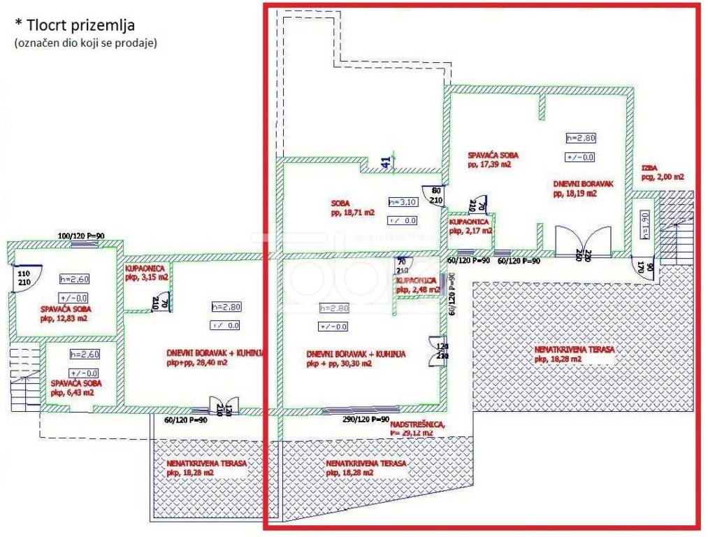 The house was built on a plot of 680m2 as a semi-detached house (semi-detached) and each house has separate connections for electricity (three-phase), water and city sewage, with its house number, everything is separated physically. The part of the house that is the subject of sale is located on a part of the plot of 326.5 m2 and is shown on the floor plan in the graphic section!