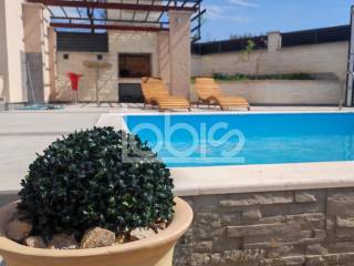 GROUND FLOOR: the residential unit has two bedrooms, a kitchen with a dining room, a bathroom, a hallway, a storage room and a terrace by the 5x5 swimming pool with an underground machine room and a barbecue with a pergola and a small herb garden.