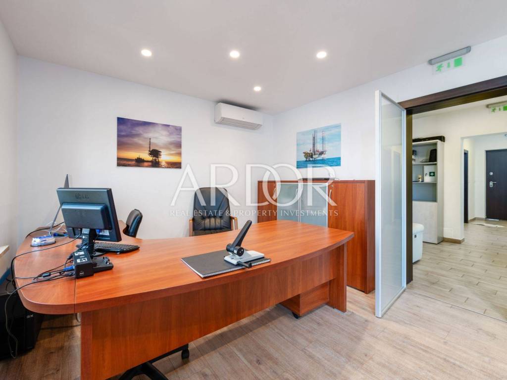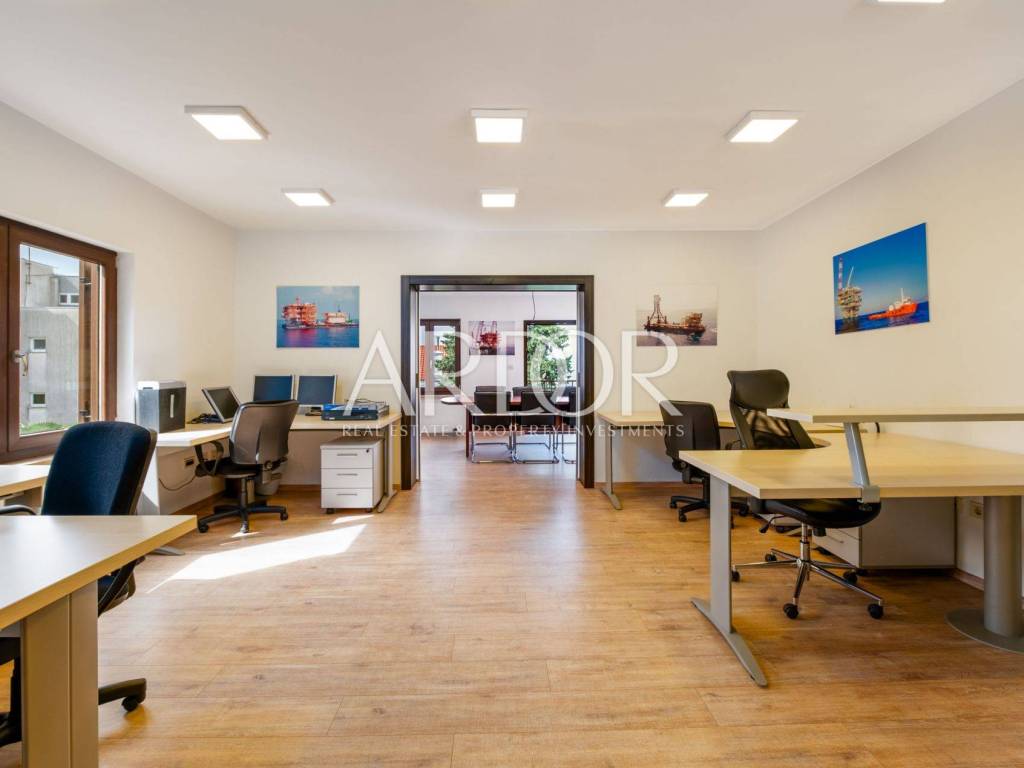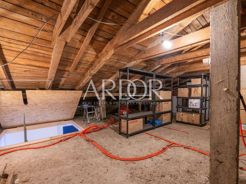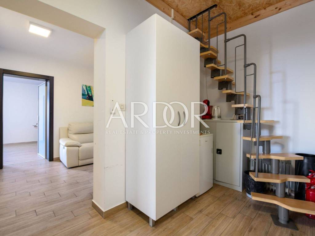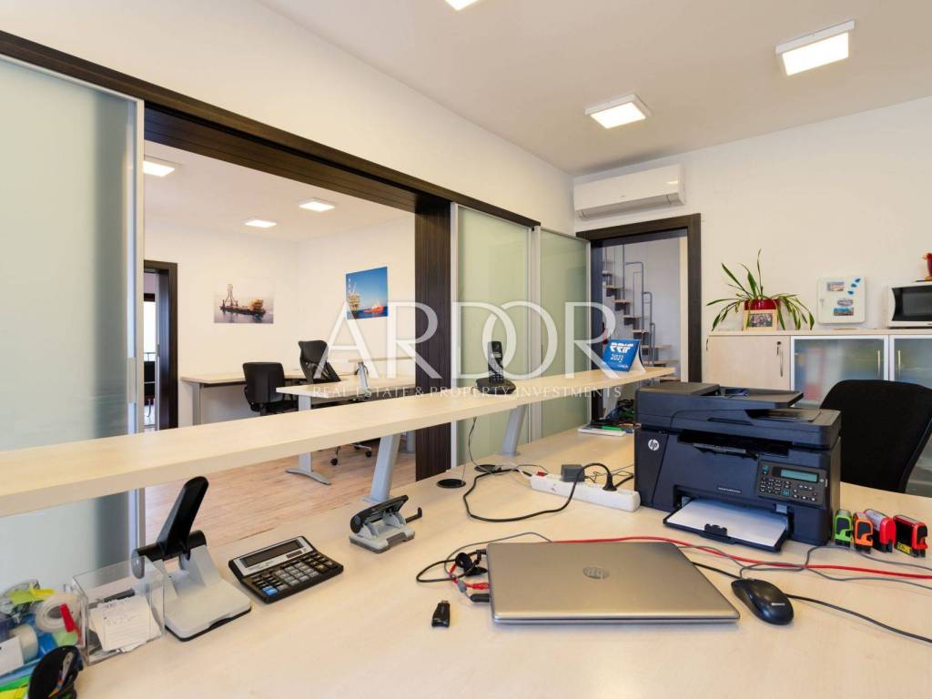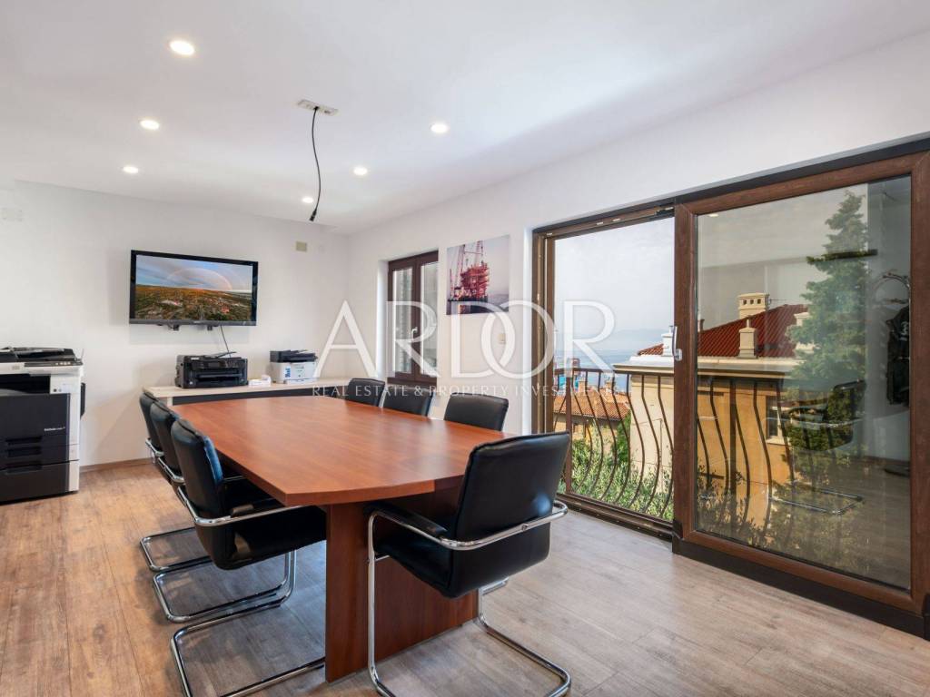 A rarity in the offer! Boulevard, we are mediating the sale of a residential and commercial unit consisting of a garage and office space in the basement, first floor, second floor and attic. The property is located in an extremely attractive location, as there are schools, kindergartens, public transport, parks, fitness centers, shops... just a few minutes' drive from the city center. The value of the house is also given by the garage, which is a rarity in this part of the city, and the office space - workshop, which can be converted into another garage, and its size is 43.84 m2. On the ground floor there is a fully adapted apartment that is not furnished, and consists of two bedrooms, a bathroom, a kitchen, a dining room, a living room and a spacious terrace, the size of which is 78.61 m2. The entire first floor is occupied by office space of 83.68 m2, which can be rearranged and repurposed with minor investments, which would result in a bright and sunny apartment with a view of the sea and an exit to the balcony. The attic space of 36.63 m2 is ready for decoration, which gives us another nice living space. The house is surrounded by cascading terraces, access to the house is possible from two sides.