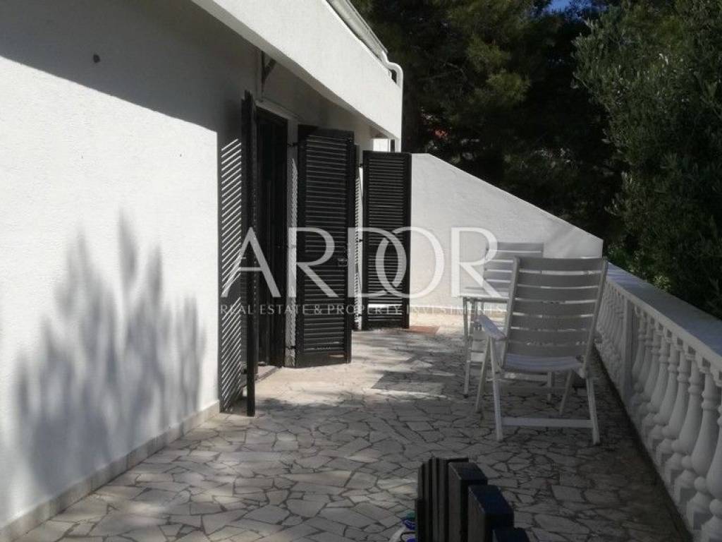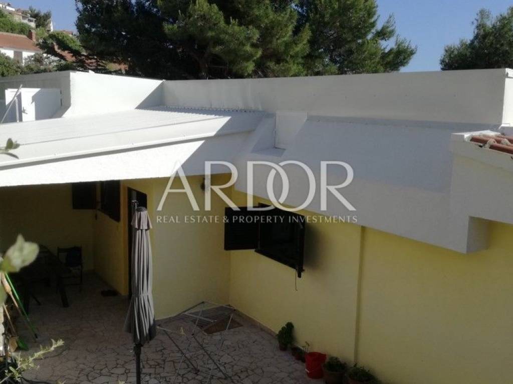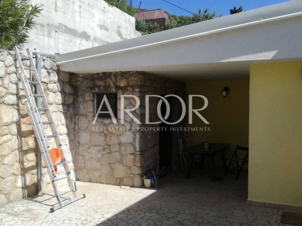 Island of Cres, Martinšćica, apartment house for sale 60m from the sea, with two large terraces and a garden with olive, laurel, rosemary and fig trees. It consists of two bedrooms, a kitchen with a dining room and a living room. It is located on a plot of 157 m2. It is enriched by a beautiful view of the sea!
