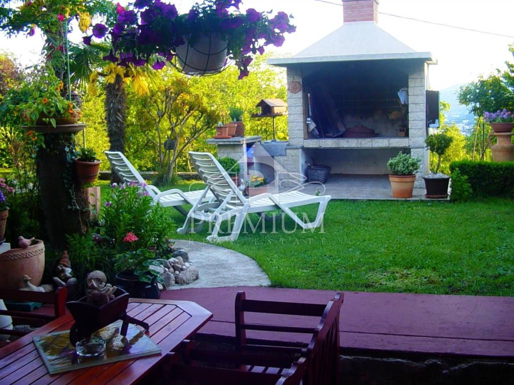Self standing house of 400 m2 living space and 900 m2 maintained orchard and garden. The house is situated in the centar of Matulji and it has it's own 4 parking places. The house consist on two flats, basement and big storage. The bigest flat is 2 floors flat and it has 4 bedrooms, 2 bathroom, specious keeping rooms. The staircase leads to the uper floor, where are situated big kichen, dining room and large living room all in one area. Sliding doors leads to the terrace covered with tent with unique view to the Kvarner bay and Učka slopes. Big basement is nice decorated and that is what it makes the house very attractive. It is situated on the North.. In he garden exscept the orchard there is lounge area and eating space and little rocky with flowers. Heat is central on loose oil. General notes: A tour of the real estate is possible only with a signed brokerage agreement, which is the basis for further actions related to the sale and collection of commission, all in accordance with the Real Estate Brokerage Act. Agency '' PREMIUM NEKRETNINE '' as an authorized Real Estate Broker, for the mediation service at the time of concluding the Preliminary Agreement or the Agreement: - Purchases from the BUYER and the SELLER charges an intermediary fee in the amount of 3%+ VAT of the CONTRACTED PURCHASE PRICE - o Lease from the LESSEE and the LESSOR charges one contracted monthly rent At each inspection of the property, the potential buyer / tenant is obliged to sign a brokerage agreement You can find more about the conditions of mediation on our website www.premium-nekretnine.hr/o-nama/opci-uvjeti-poslovanja-u-prometu-nekretninama
