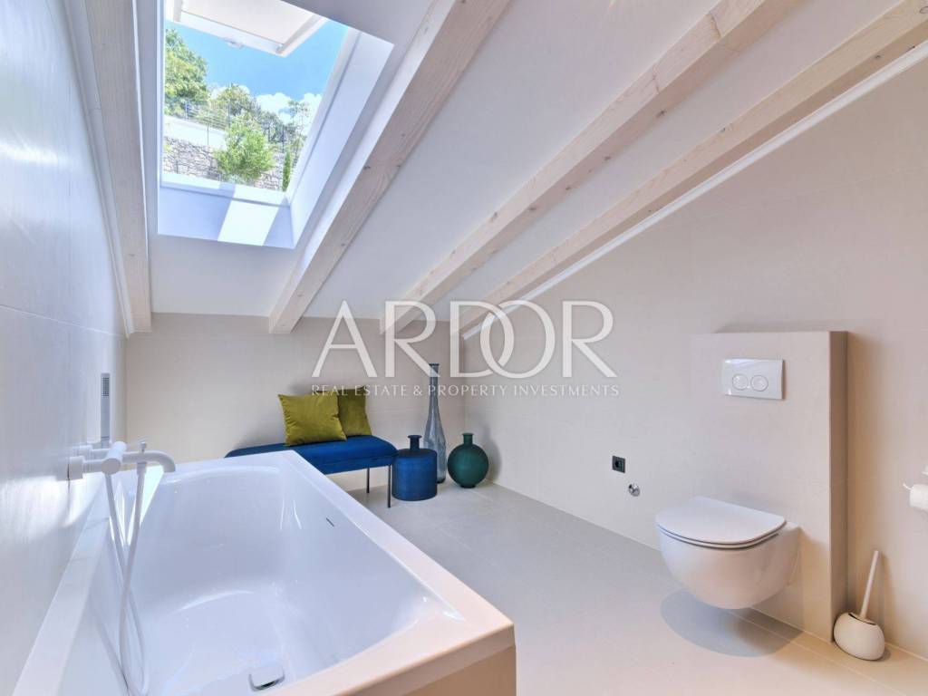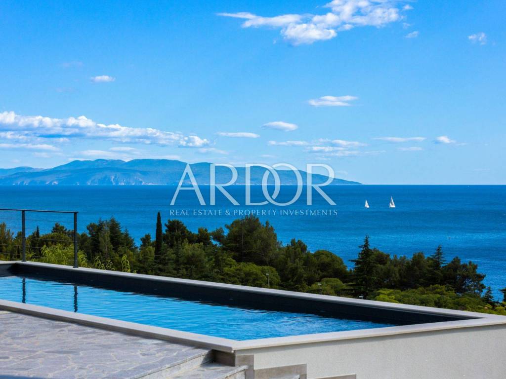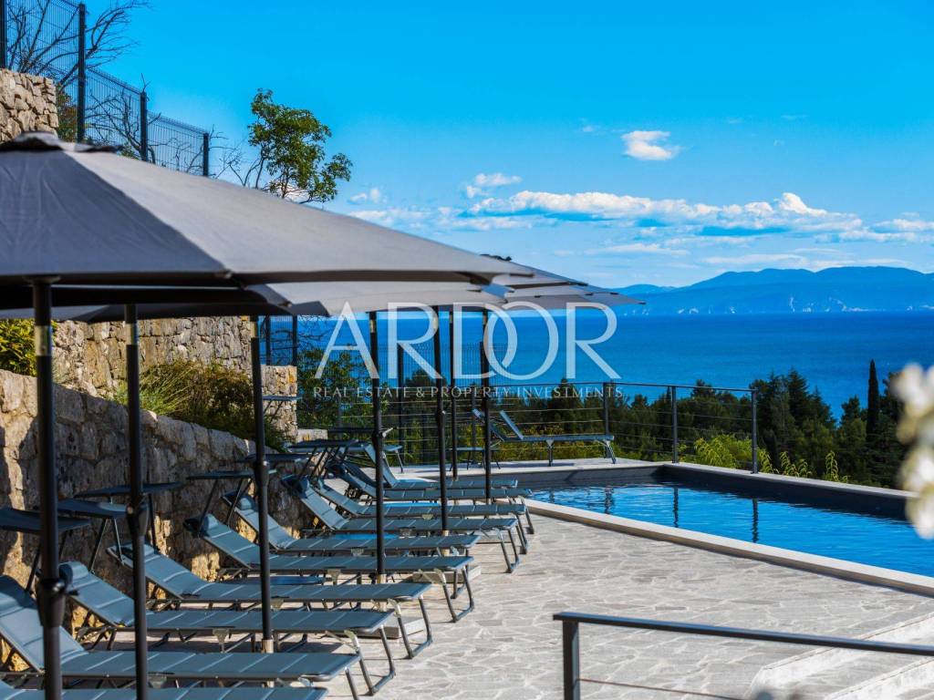Opatija Riviera, in a unique location, first row to the sea, this luxury resort is situated on a 1449 m² plot with beautiful landscape, terraced gardens and a 50 m² swimming pool, offering stunning, uninterrupted views of the Opatija Riviera.