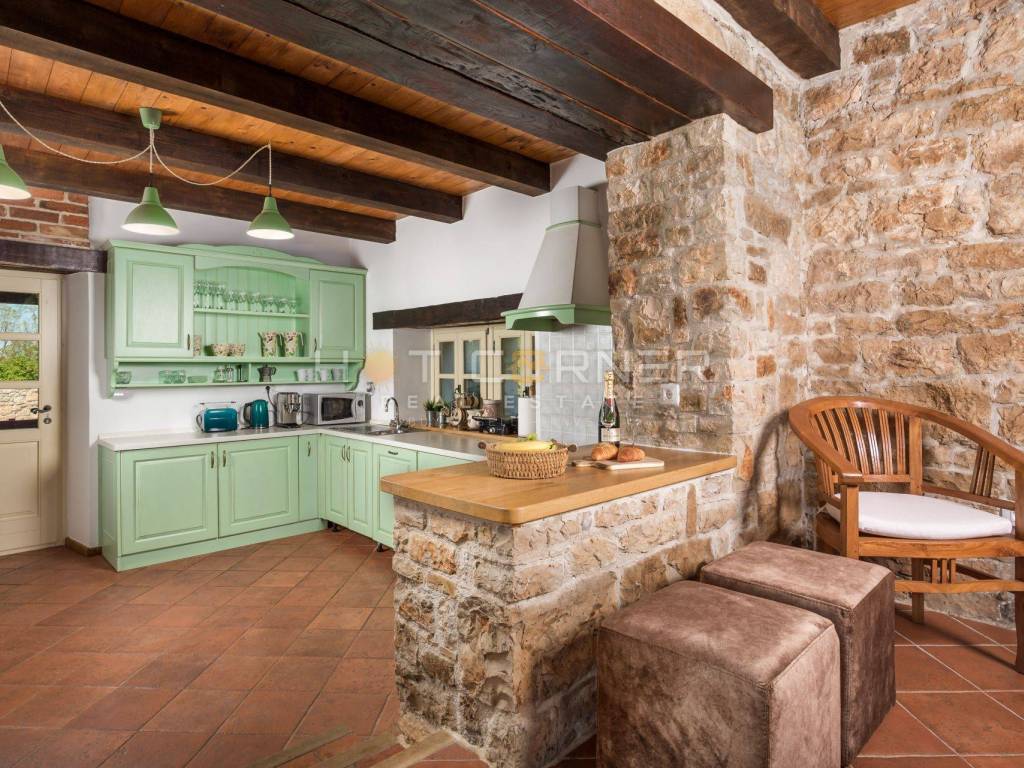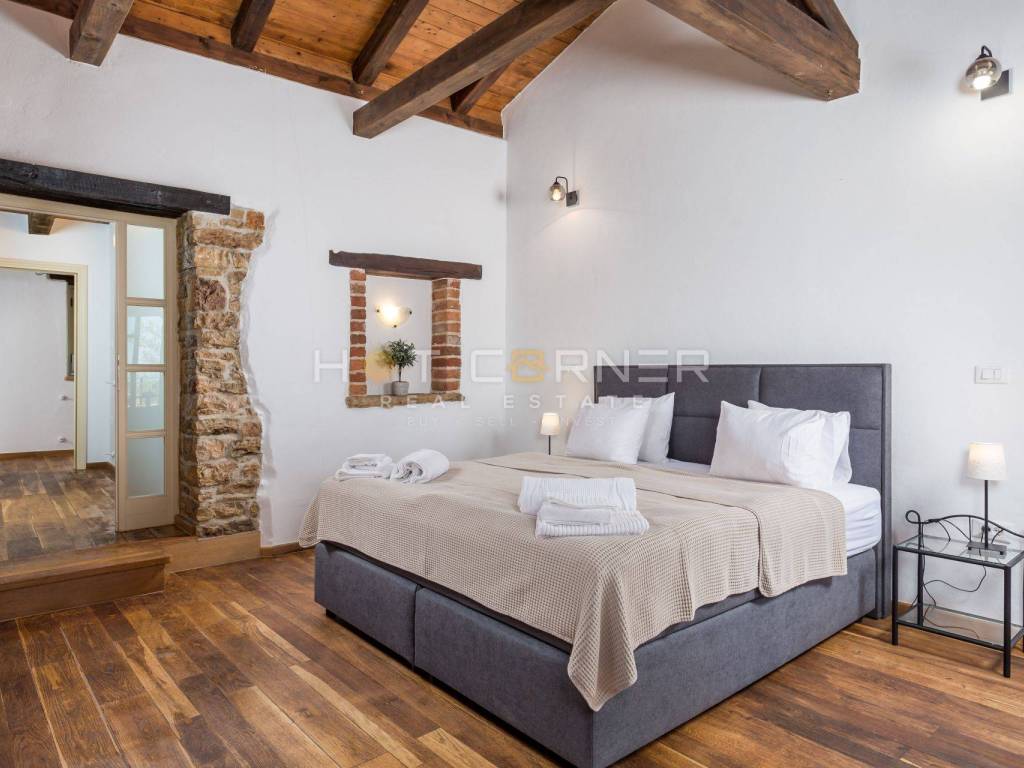 Located in a peaceful and relaxing environment, the villa is ideal for relaxing moments, but at the same time it offers all the advantages of modern living. The entire region proudly preserves its history and tradition, and those fundamental Istrian symbols such as Istrian kažun, dry wall, and of course top gastronomic specialties such as Istrian prosciutto, Istrian cheese, and olive oil.