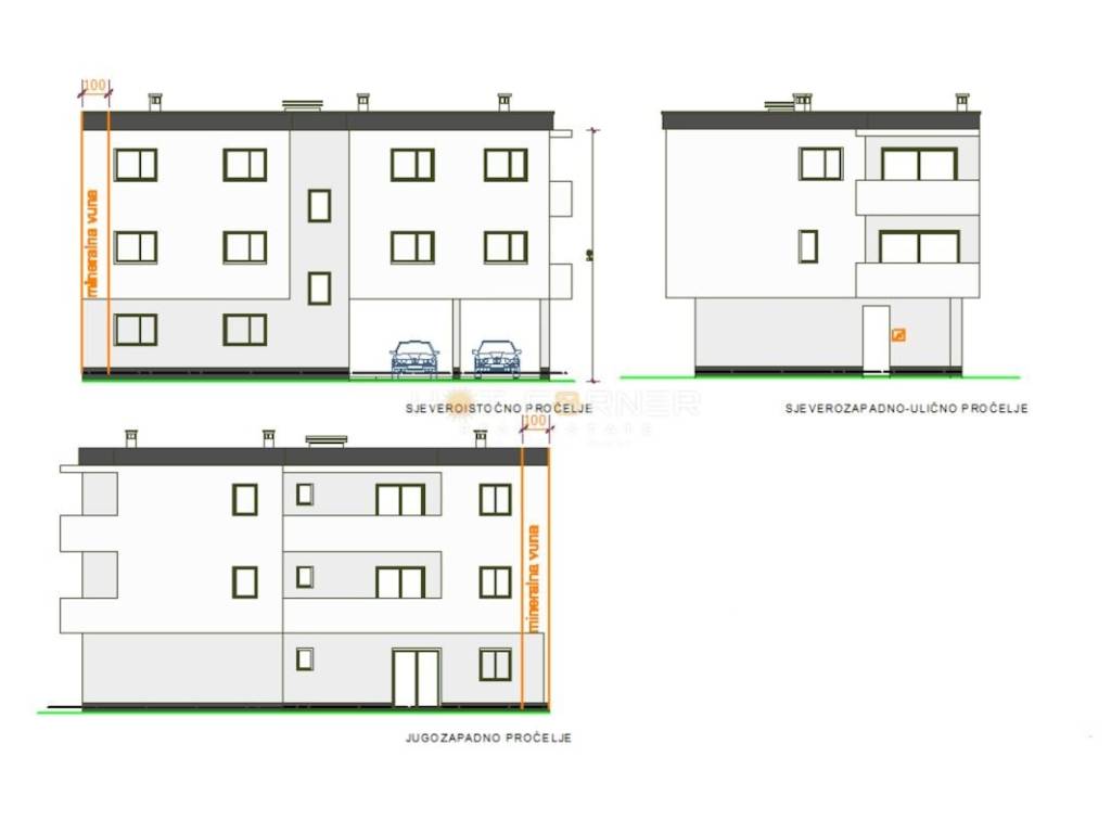 The building will have a staircase and corridors paved with ceramic tiles, and a demit facade. The apartment will be equipped with ceramic tiles and laminate, external PVC carpentry, internal carpentry, sanitary facilities, common antenna system, intercom, sockets, and inverter air conditioner.