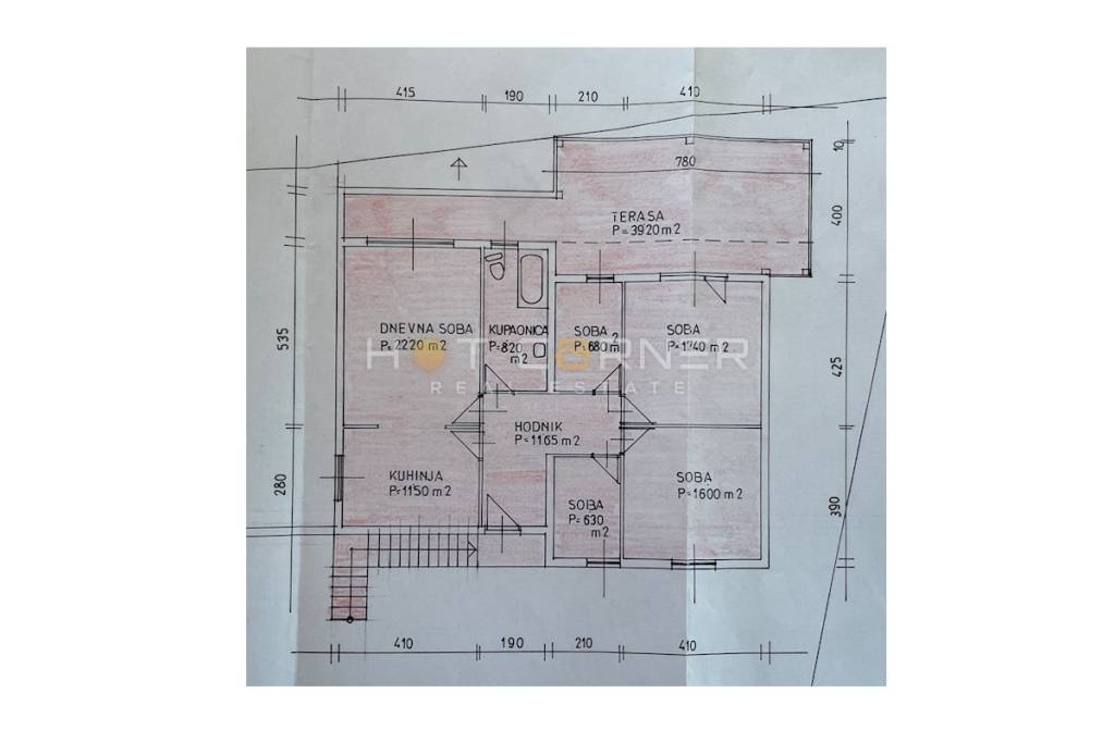 For sale, an apartment in a great location in the immediate vicinity of the sea in Vinkuran with a beautiful view of the sea. The apartment has an area of 100.05 m2 plus a terrace of 39.20 m2 plus a staircase of 7.90 m2. The apartment consists of an entrance hall behind the wardrobe, 4 bedrooms, living room, kitchen and dining room, and a large terrace of 39.20 m2. The apartment has new exterior PVC joinery, inverter air conditioning, parquet in the living room and bedrooms, ceramic tiles in the bathroom, kitchen in the hallway.