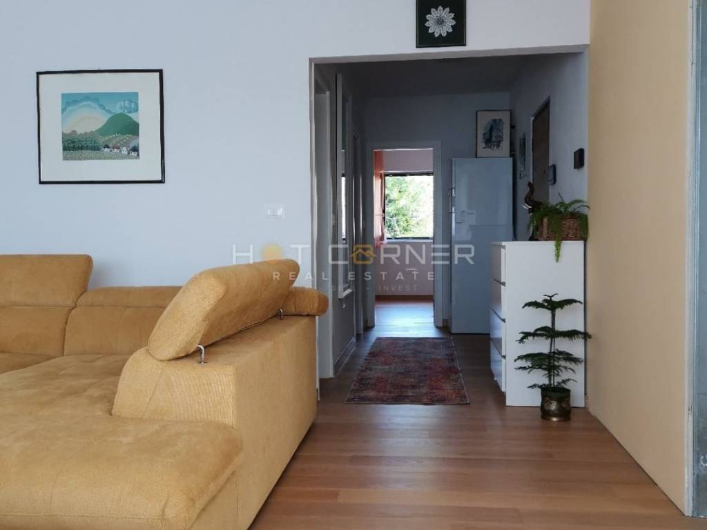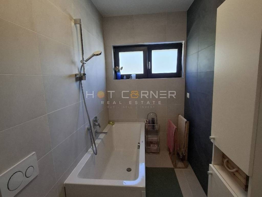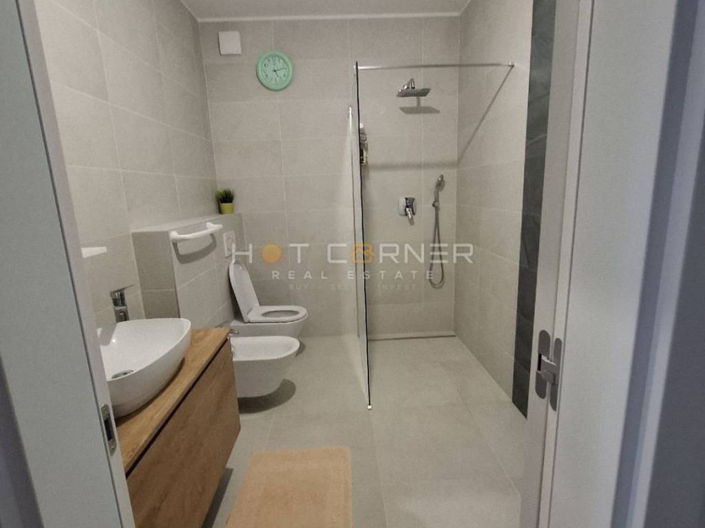For sale, a very luxurious apartment on the 1st floor of a new building in Vidikovac in Pula. It consists of two bedrooms (one has its own bathroom with a bathtub, and the other has a walk-in shower with a bidet), a storage room with a toilet (utility room), a separate dining room, a living room, and a large terrace.