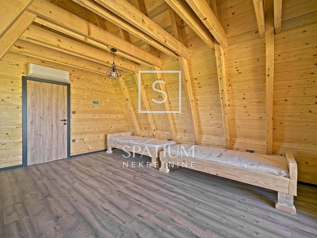 BROĐANI, KARLOVAC, we are offering a beautiful wooden house in a new building with an area of 120 m2, located in an idyllic location, just a few meters from the Kupa River. It consists of a ground floor with a bedroom, a bathroom with a toilet and a spacious open space with a kitchen, dining room and living room with access to the outdoor terrace and garden. Internal stairs lead to the first floor where there are two bedrooms, one of which has its own balcony. The house is equipped with a modern kitchen, underfloor heating and air conditioning in every room, and a wood-burning fireplace for a complete atmosphere. A spacious garden of 853 m2 with a view of the river provides enough opportunities to enjoy nature and socialize outdoors. Great property for tourism or for vacation and enjoyment! The village of Brođani is located on the right bank of the Kupa River, 13 km east of Karlovac. Until 1948, it was called Gliboki Brod (Brođani and Brežani). The people of Brođe are also known for the "Grain Ship" tourist attraction - a historic ship that sailed on the Kup River in the 18th century and transported grain. Karlovac is a city in central Croatia, 56 km southwest of Zagreb and 130 km northeast of Rijeka. It is located on the Dinaric edge of the Pannonian Plain, and the hilly and mountainous part towards the Mediterranean begins precisely from the Karlovac area. It is located at the crossroads of important road and rail routes from Zagreb to Rijeka and Split. In addition to numerous parks and green areas, which is why it bears the epithet "city of parks", Karlovac's specialty is even four rivers that pass through the city - Korana, Kupa, Dobra and Mrežnica, for which it is known as the city of four rivers. For other information, please contact us with confidence. Rajko Trbović mediation assistant +385 91 2681 356 rajko@spatium.hr Spatium nekretnine +385 51 272 903 info@spatium.hr