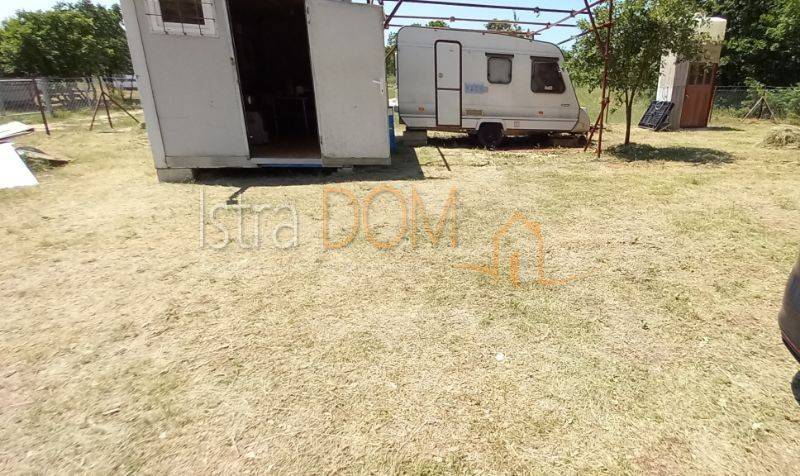 Na parceli je kontejner, kamp kućica, wc, septička