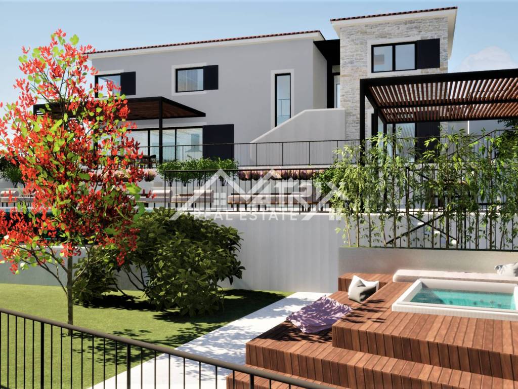 The central part of the outdoor terrace is a beautiful 38 m2 infinity pool with a sunbathing area, next to which there is an outdoor kitchen with a fireplace, an ideal space for unforgettable summer evenings. Below the pool, on a lower level, there is a lawn next to which there is a hot tub with a wooden sunbathing area. On the lowest level, the investor has foreseen an authentic Istrian bocce court, but the future owner has the option of adapting this area to his wishes and needs. The entire garden will be horticulturally decorated and fenced, ensuring complete privacy and peace.