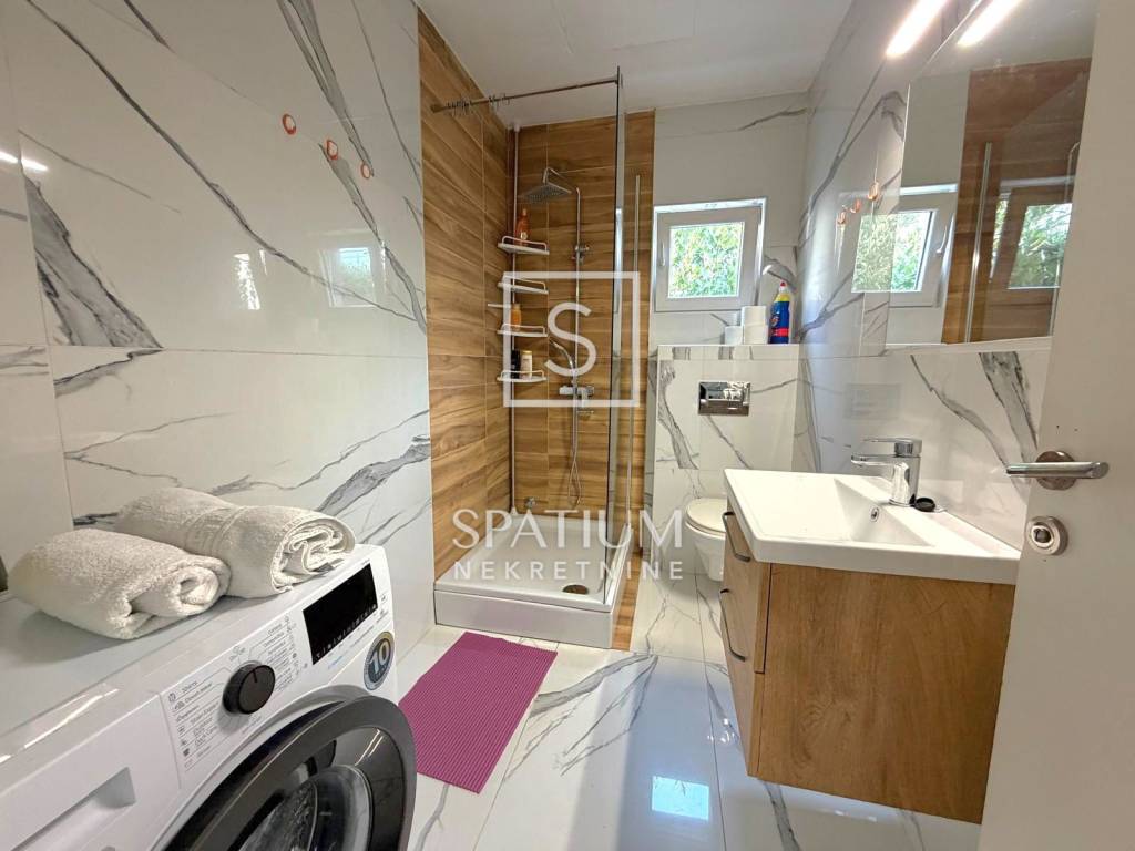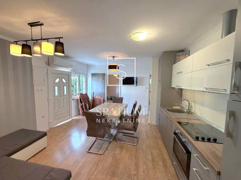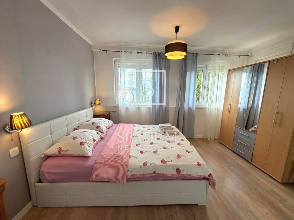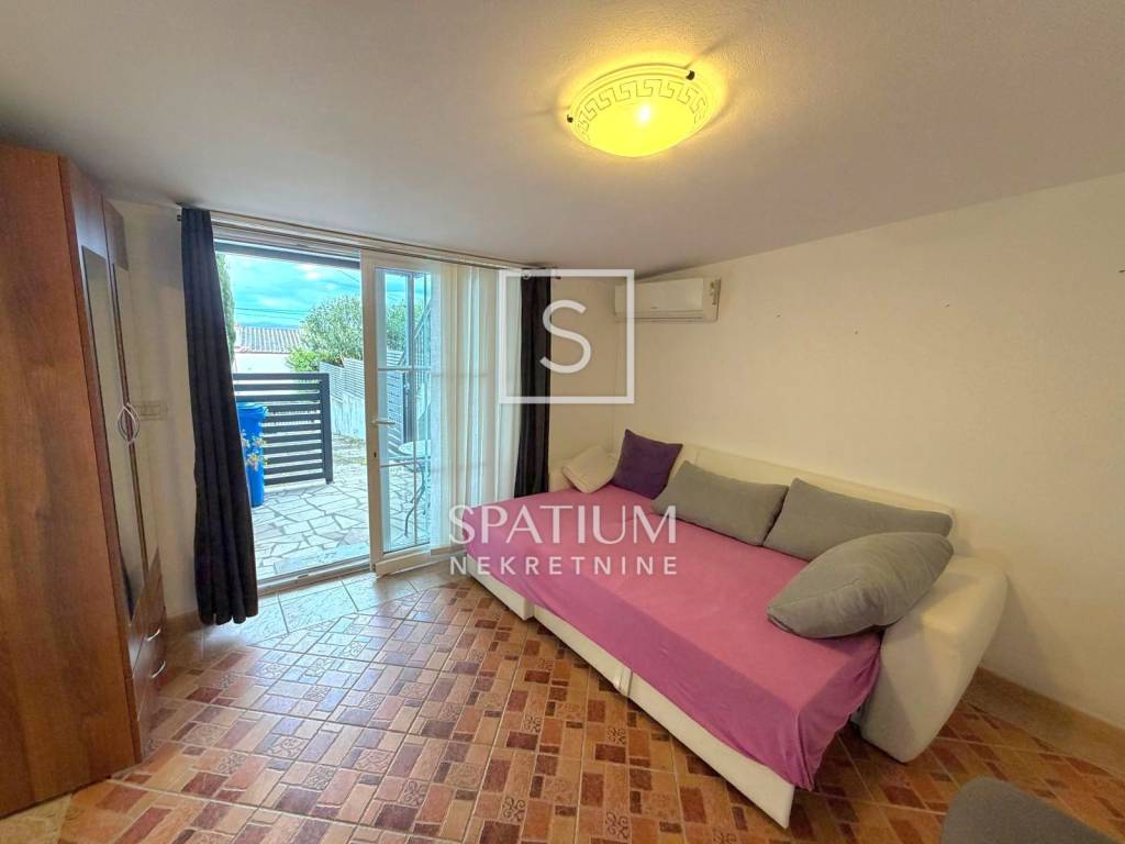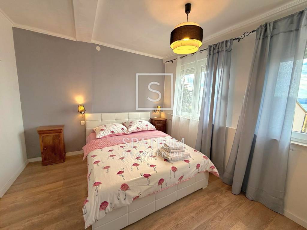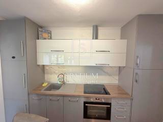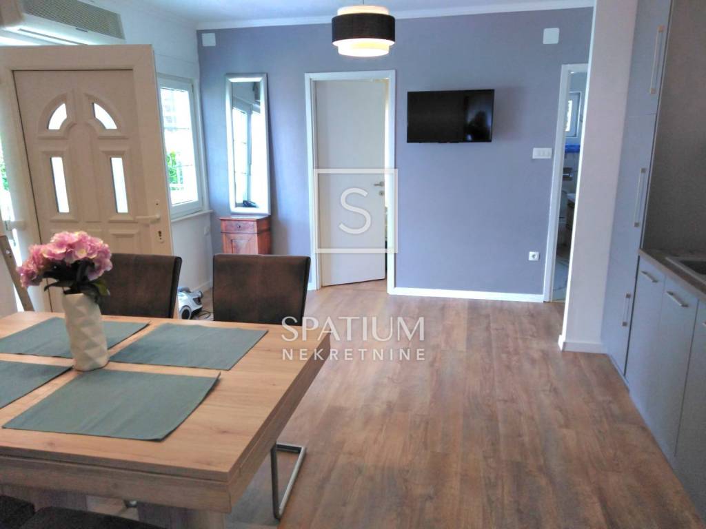 DRAMALJ, CRIKVENICA, we offer an apartment in a great location, close to the sea. It is located on the first floor, net usable area 43.89 m2. It consists of a kitchen with dining area and living room, two bedrooms, bathroom, and an uncovered terrace of 3.0 6 m2. Auxiliary space on the ground floor, in the nature of a furnished studio apartment, area 23.89 m2, consists of a kitchen, a room for day/night stay, bathroom and a covered terrace of 2.65 m2. Storage room under the stairs, two parking spaces within the fenced garden. The property is suitable for vacation or year-round stay in an attractive location, an excellent investment.