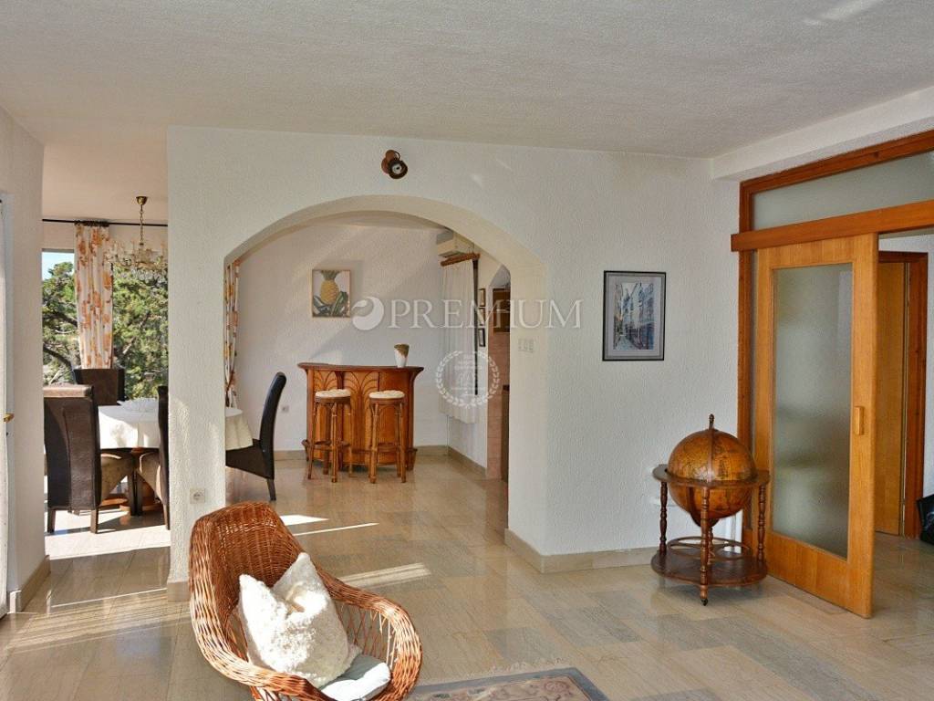 All floors are connected by an internal staircase. In the basement there is a large garage and a basement with a boiler room. There are two apartments on the ground floor. Each apartment consists of a hallway, bathroom, one bedroom, kitchen, living room and terrace. On the first floor there is a third, large apartment with two bedrooms, bathroom, hallway, pantry, kitchen with dining area and living room with access to the terrace overlooking the sea and the green area.