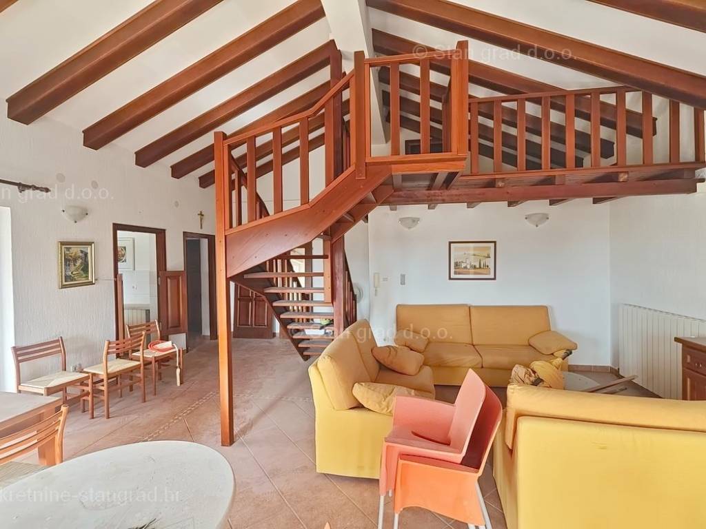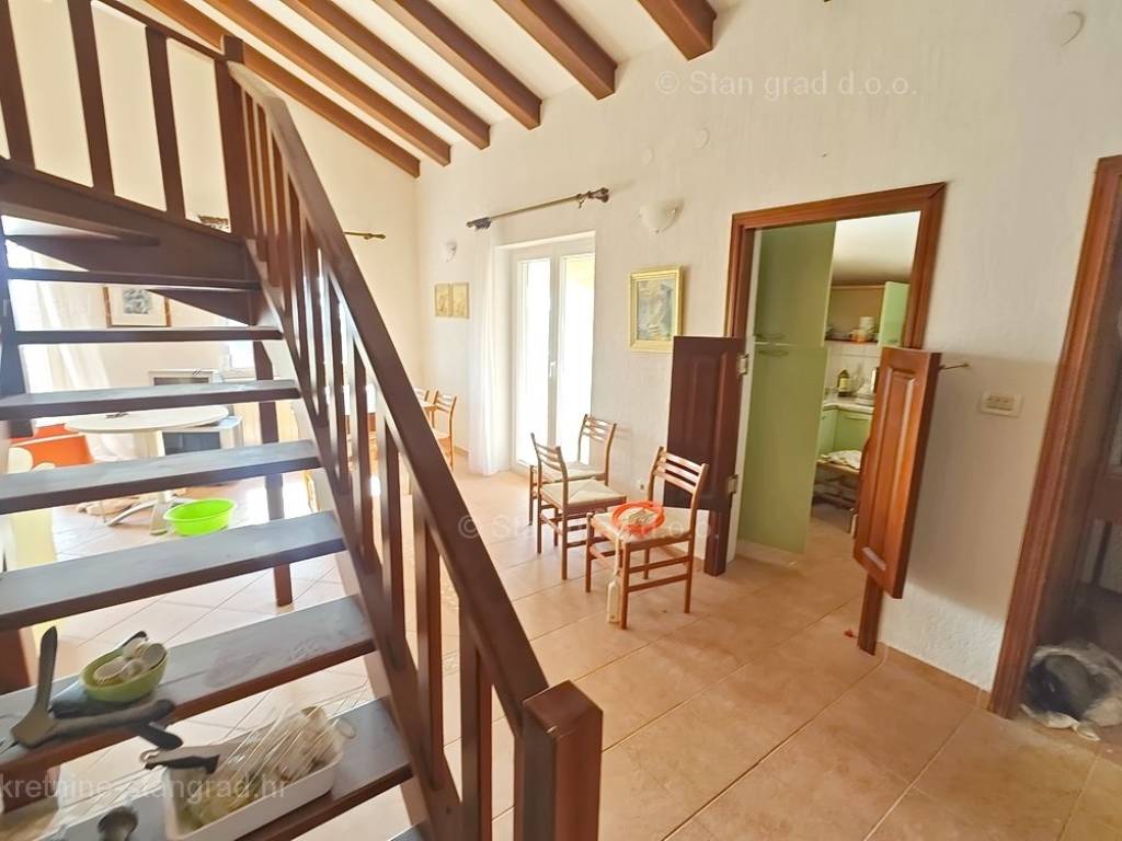 We offer a very high-quality apartment for a tourist stay in the northern Adriatic on the usually desirable Kvarner destination, the island of Krk. The apartment is located in a quality and urbanized location near the sea and the center of the town of Krk. Considering the property by type, this is a spacious one-story apartment. In a top-quality building, the apartment is positioned on the 1st floor. The area of this apartment is 105 m2 in total. The area includes an entrance hall, living room and kitchen with dining room, 2 bedrooms, bathroom and three terraces. It is also important to note that the apartment has a gallery that can be arranged according to the wishes of the new owner. The interior of the property is very well maintained and fully equipped with all necessary technical devices and quality furniture. Ownership of this apartment also includes the possibility of using the common part of the yard of the building in question, where there is a swimming pool and a sunbathing area. This apartment has a parking space for two cars. In addition to the above, it can also be noted that the apartment is oriented in such a way that it offers a beautiful view of the lovely coastal landscape and the surrounding area of the settlement. This apartment is owned by a natural person, so the buyer is obliged to pay 3% sales tax when transferring ownership to his/her name. The seller of the property guarantees a quick transfer of ownership rights and proper ownership and technical documentation. Visit us on the island of Krk and see for yourself that your satisfaction is our priority. If you place your trust in us, the Stan Grad Immobilien agency will be happy to help you transfer the ownership rights of this property and the bill for its utility connections and services to your name.