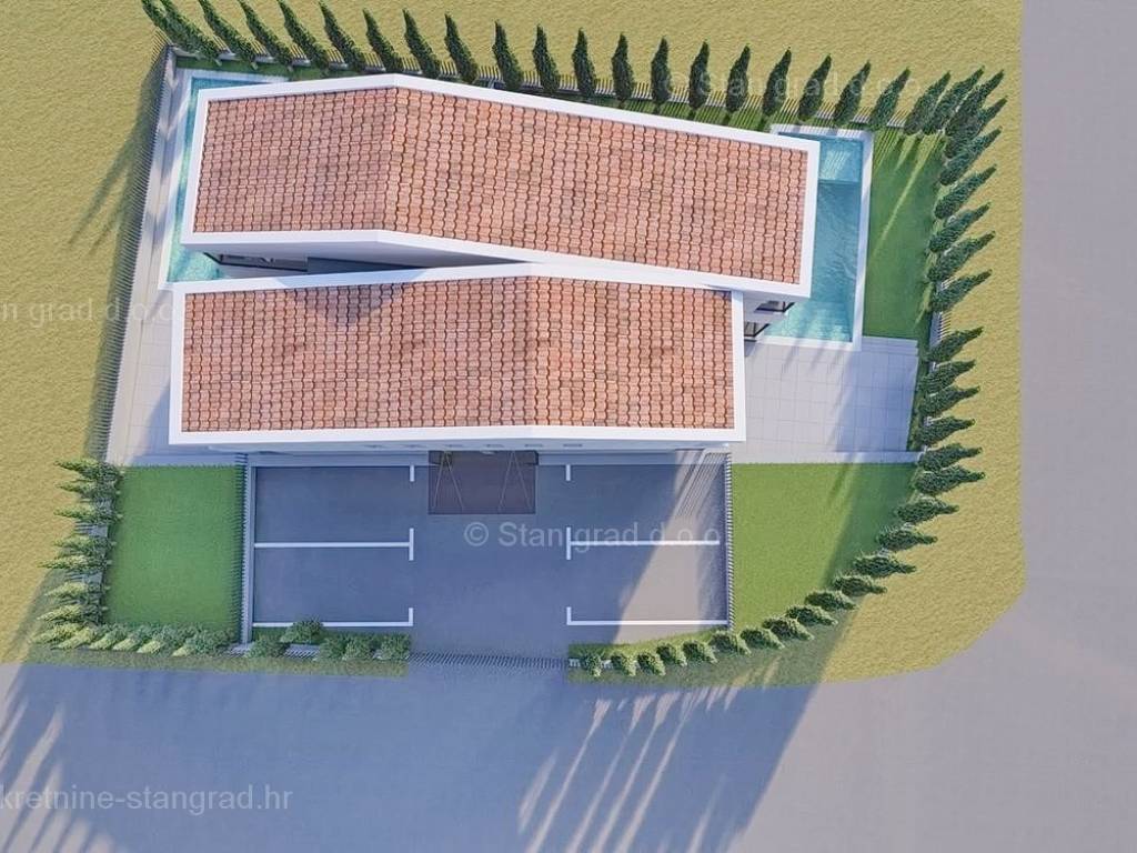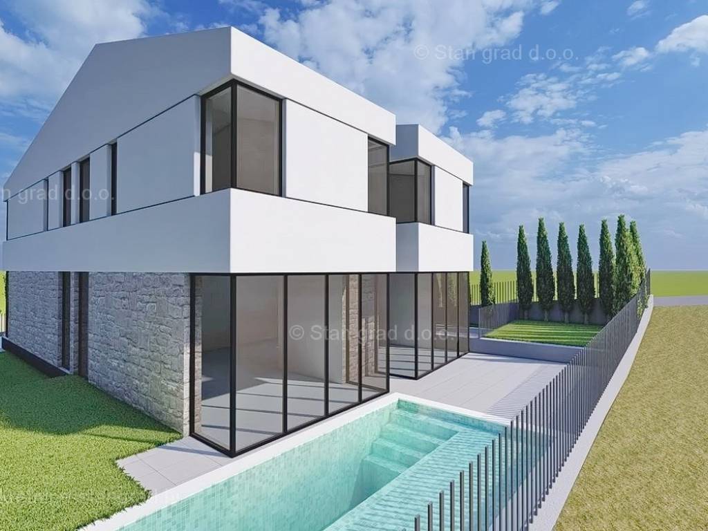 As part of the Kvarner real estate offer, the Stan Grad Immobilien agency is selling a designer-designed and modernly built tourist house in the northern Adriatic Mediterranean region of the island of Krk. This attractive property is located in an exceptional location near the center of the famous tourist resort of Malinska. Structurally, this is a semi-detached house. The excellent quality property is built on a total of 2 spatially useful floors. The structure of the space provides for the residence of a single family. The house occupies a total area of 103 m2. The aforementioned area includes an open space living room and kitchen with dining room on the ground floor, and on the first floor there is a hallway, toilet and 2 bedrooms with private bathrooms and a terrace. The ownership of the described property also includes a beautifully designed garden, which is given special charm and value by a swimming pool and a furnished relaxation area. Two cars can be comfortably parked on the garden of the described property. In addition to the above, it should be noted that the house has a beautiful view of this coastal town. This property is subject to VAT. The seller of the property guarantees a quick transfer of ownership rights and proper ownership and technical documentation. We are waiting for you in Kvarner, at our office address on the island of Krk. In addition to a professional tour and presentation of the property and its legal status, the friendly staff of our agency will be happy to assist the property buyer in transferring ownership rights and transferring utility bills to their name.