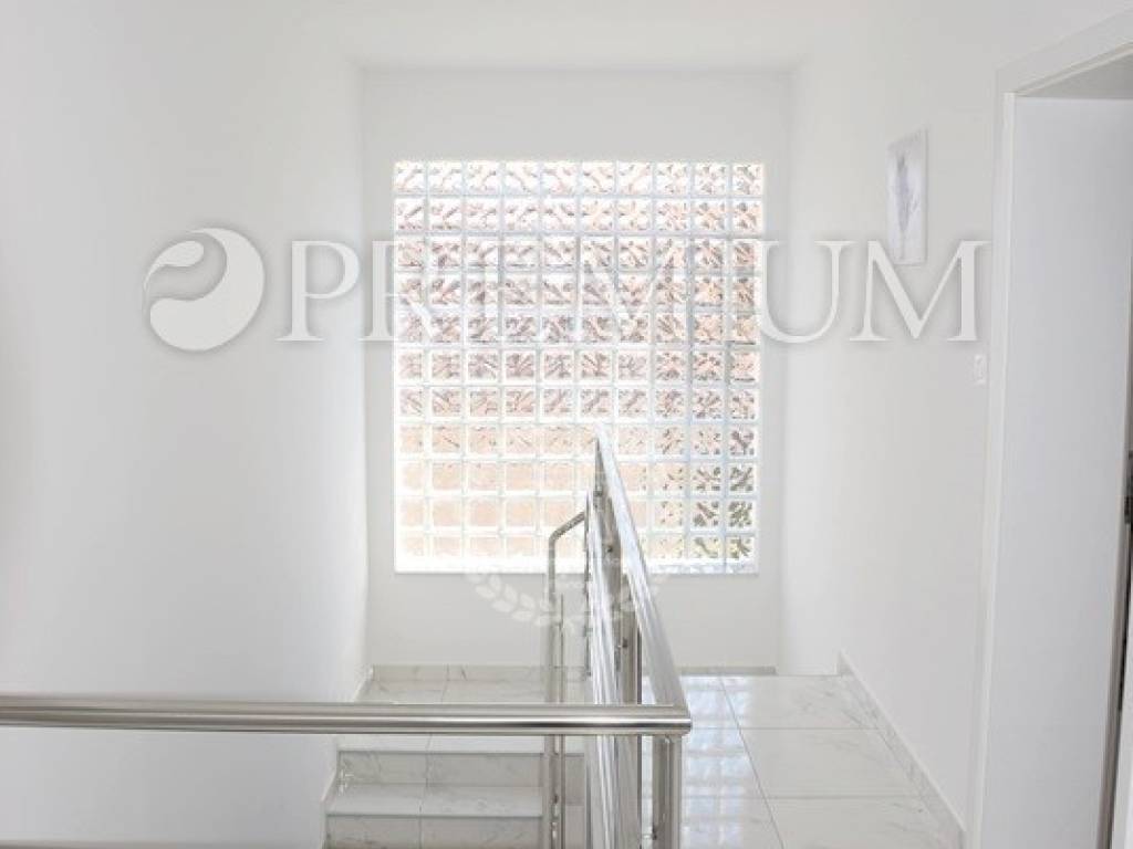 The house is built on a plot of 513 m2, with a net living area of 171 m2, consisting of a ground floor and a first floor. The ground floor comprises a living room, kitchen, dining room, a bedroom with a bathroom, and a storage room. On the first floor, there is a hallway, three bedrooms, each with its own bathroom, and a 15 m2 terrace with a stunning panoramic view. The house is air-conditioned with 5 air conditioners. The furniture is included in the price.