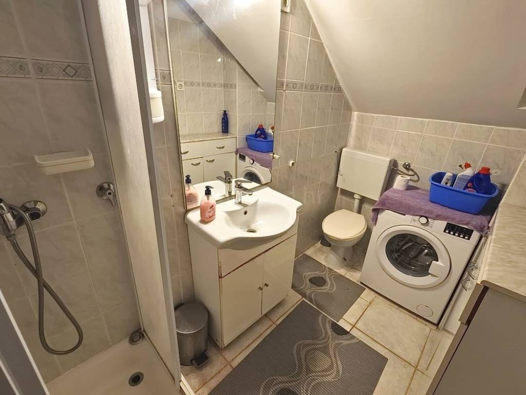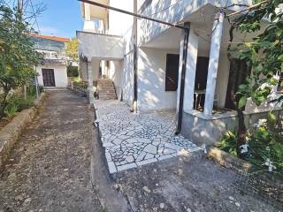 This is a semi-detached, multi-level house, well-built and well-maintained, with a total living area of 280 m², spread across four floors. It consists of three separate residential units. The basement features a one-bedroom apartment of approximately 39 m². The ground floor includes a two-bedroom apartment of about 95 m², with two terraces. On the first floor, there is another two-bedroom apartment of approximately 50 m², with one terrace. The spacious attic, covering around 80 m², includes a storage area and a terrace offering a stunning sea view.