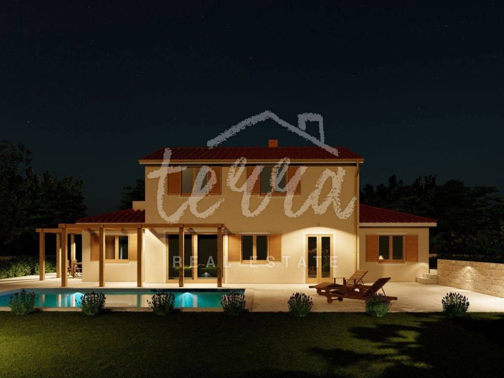 Modern house under construction with swimming pool, TINJAN area The price refers to the TURNKEY (without furniture), planned completion in the summer of 2026. which gives the future buyer the opportunity to participate in the selection of final details - from the color of the facade to the type of carpentry and interior decoration, which will allow you to fully adapt the home to your wishes.