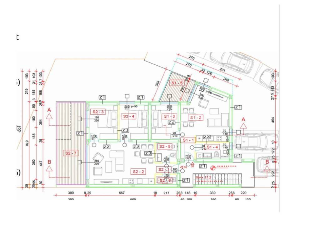 Apartment S1 is located on the ground floor of the building and has a total net area of 63.45 m². The living area covers 43.10 m², with a covered terrace of 17.50 m² and a garden of 46.30 m². The apartment has a functional layout with one bedroom, a living room with kitchen and dining area and a bathroom. The terrace and garden provide a pleasant space for outdoor living, overlooking the sea and the landscaped environment.