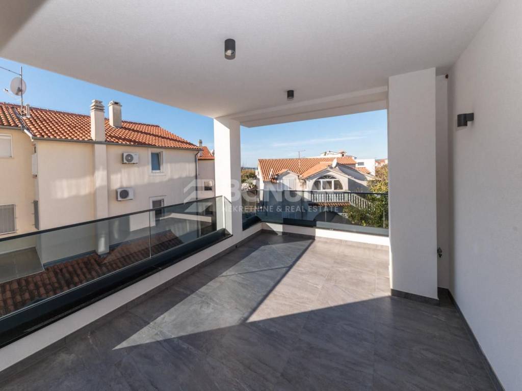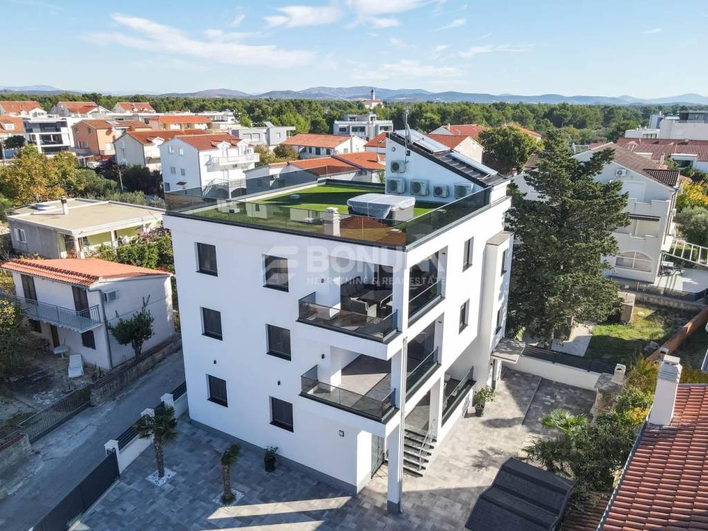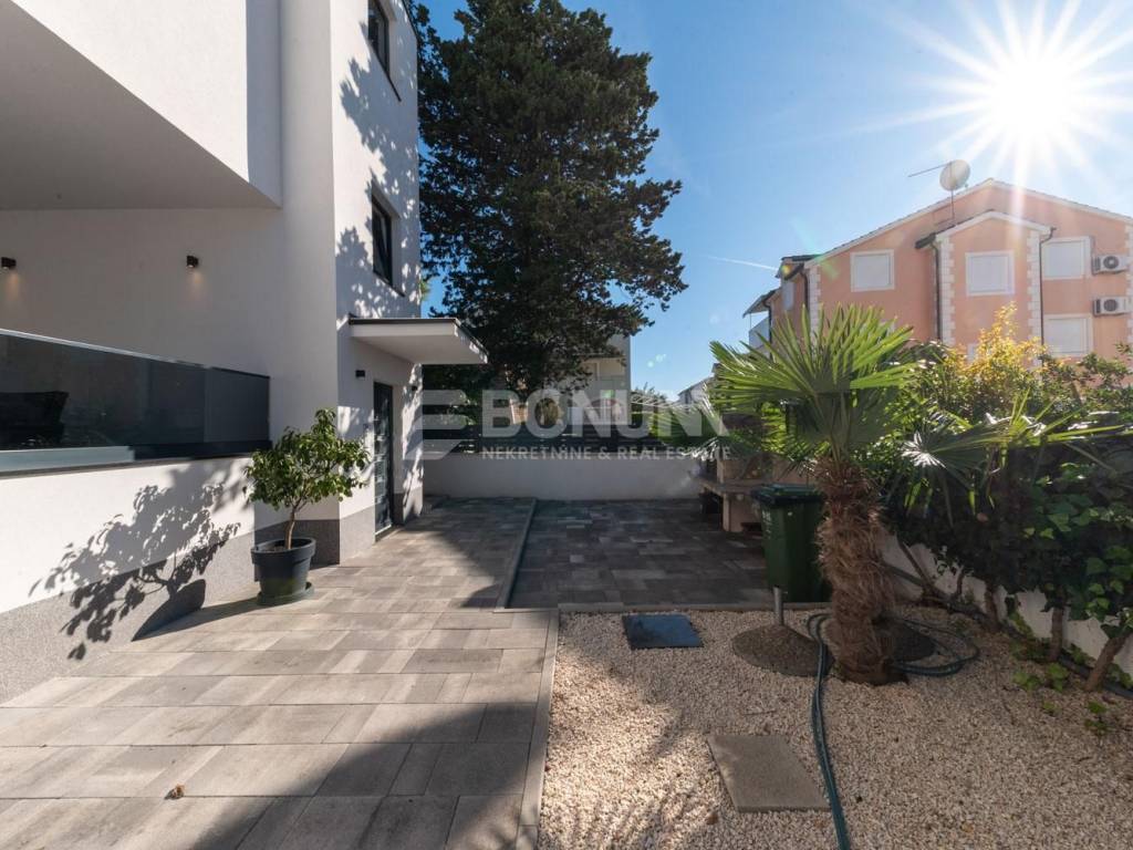 The house consists of three floors with a total of five separate apartments, as well as a rooftop terrace with a sea view and a jacuzzi. On the ground floor there is a spacious apartment S1 with a total area of 77 m², featuring two bedrooms, a bathroom, a kitchen with dining area and living room, and a large terrace. The apartment includes one parking space, is fully air-conditioned, has underfloor heating, and separate electricity and water meters.