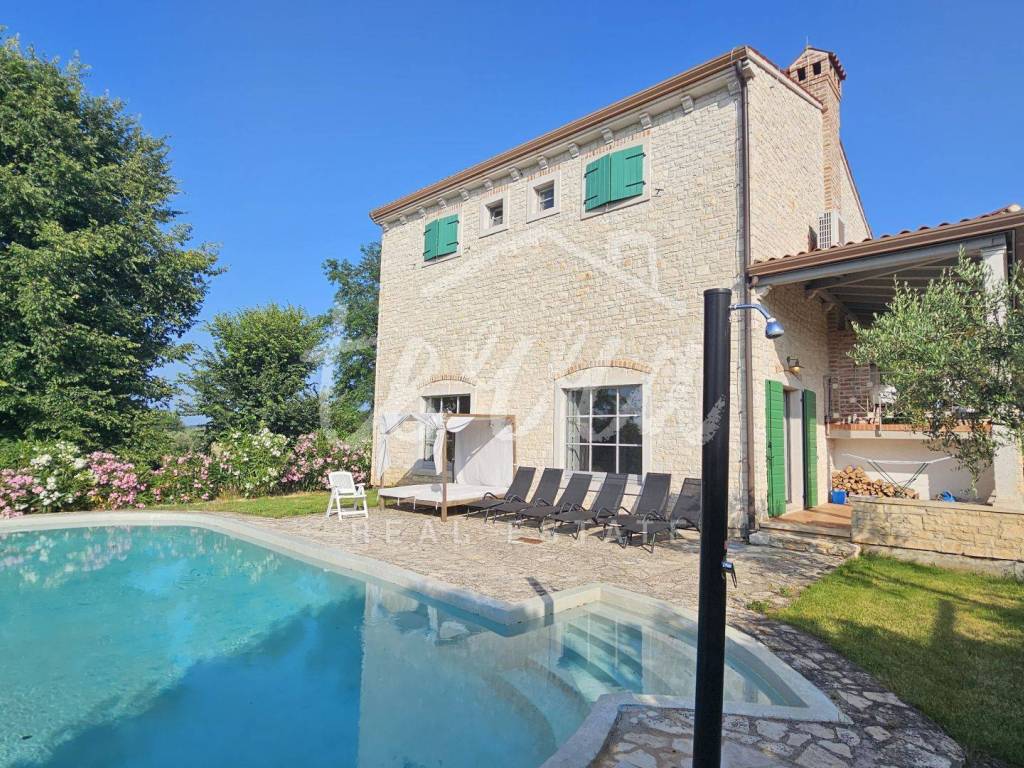 This beautiful Istrian stone villa is for sale, with a modern and minimalist interior design, near Vižinada.