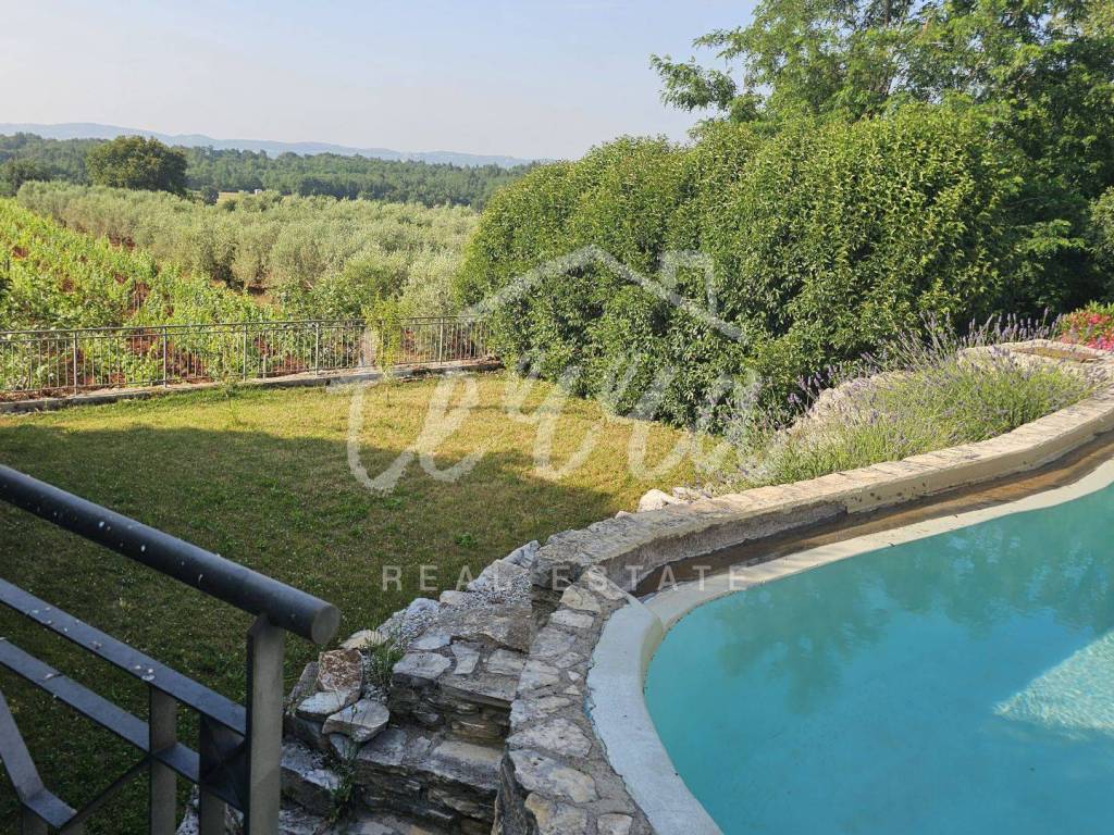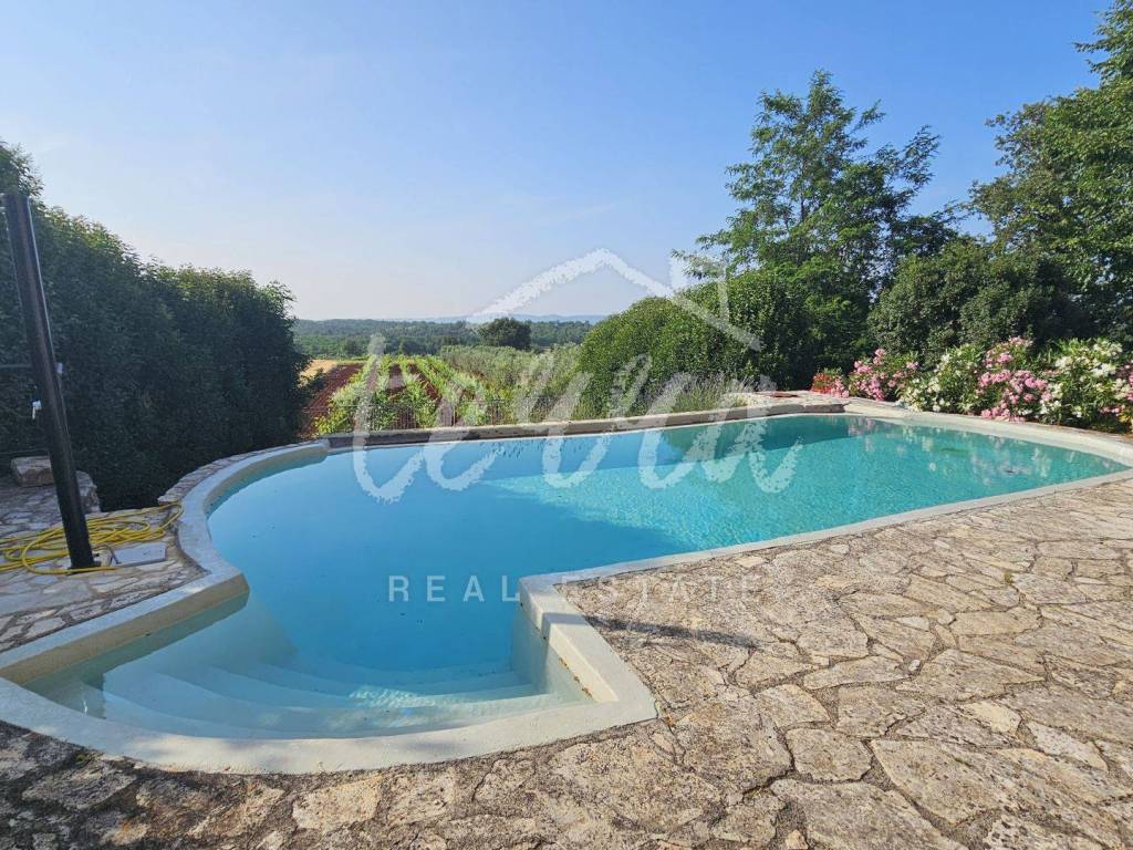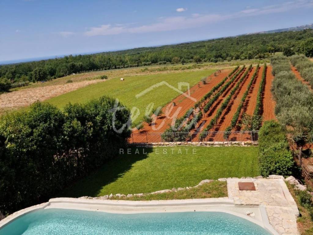 This property is perfect for a hedonistic vacation, surrounded by greenery with a beautiful panoramic view. A swimming pool that blends perfectly into the ambiance, a spacious environment in the Mediterranean style, carefully decorated interior and exterior and a peaceful environment and privacy provide an opportunity for an ideal investment in tourism or an idyllic family life.
