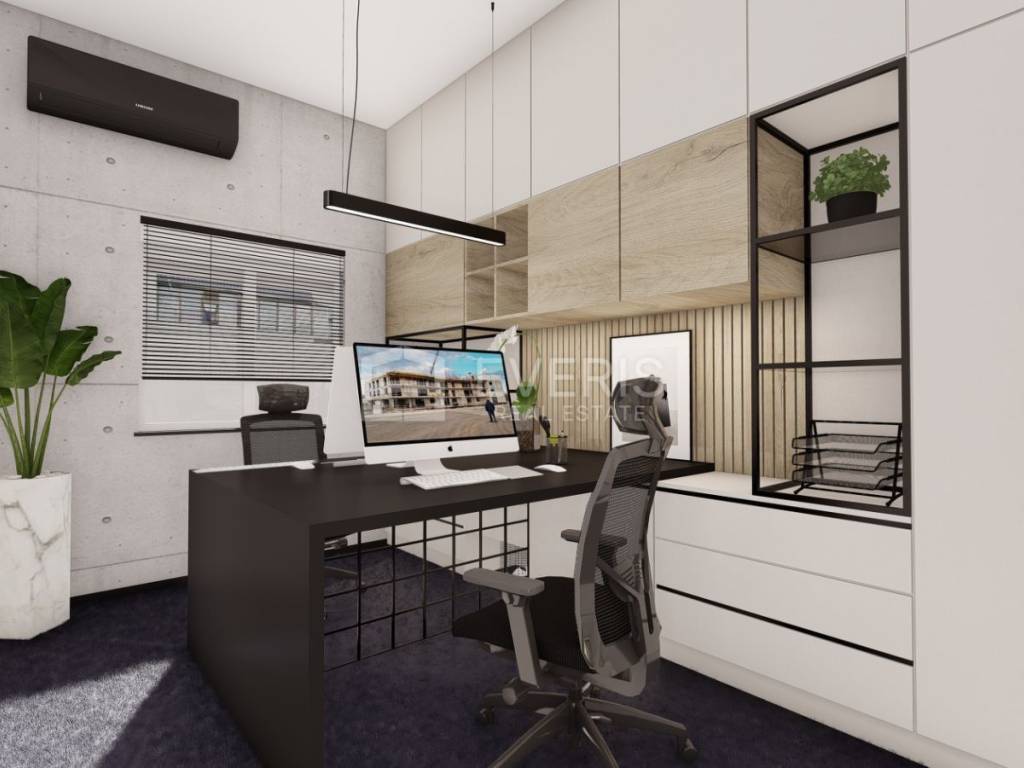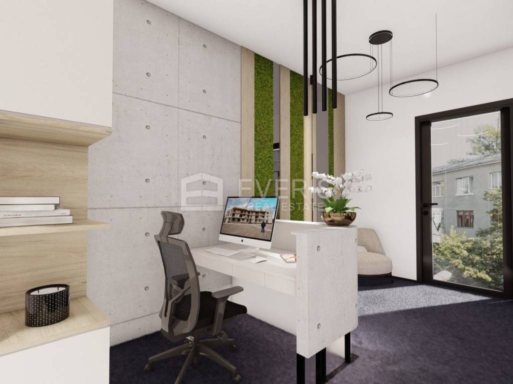 Prostor se nalazi u prizemlju stambeno poslovnog objekta od tri poslovna prostora i šest stanova, a isti se sastoji od predprostora, tri sobe, kuhinje, sanitarnog čvora, lođe, te četiri parkirna vanjska mjesta.