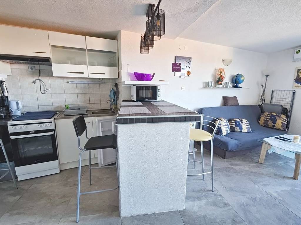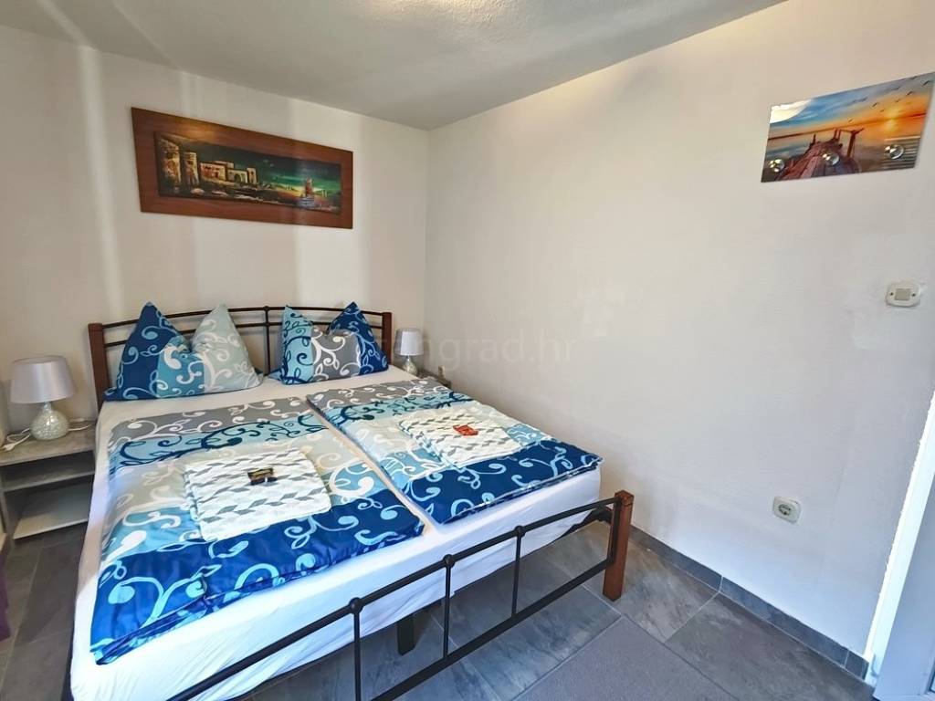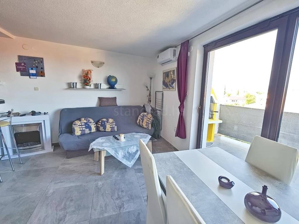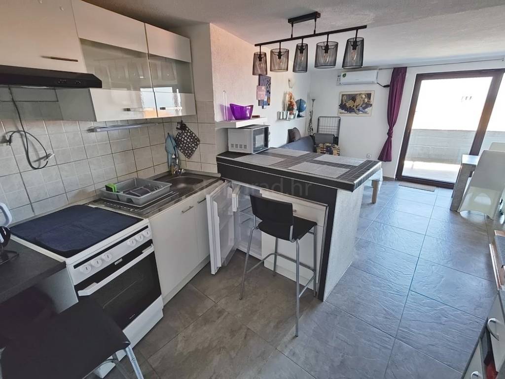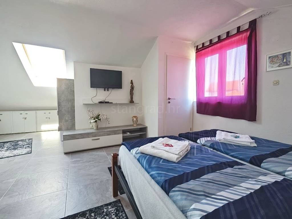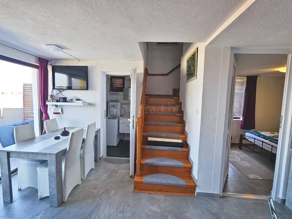 In the property selection of the Stan Grad Immobilien agency on the island of Krk, there is a very attractive apartment that is ideal for a tourist stay and vacation on the Adriatic. The apartment is located in a charming settlement in a highly sought-after location, in close proximity to the sea and the center of Malinska. It is a two-level apartment with internal stairs, with the entrance situated on the lower floor.