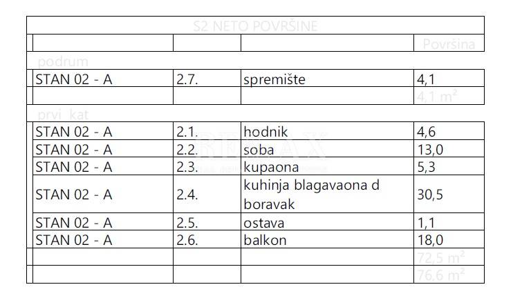 The apartment also has a 4.1 m2 storage room in the basement and two parking spaces.
