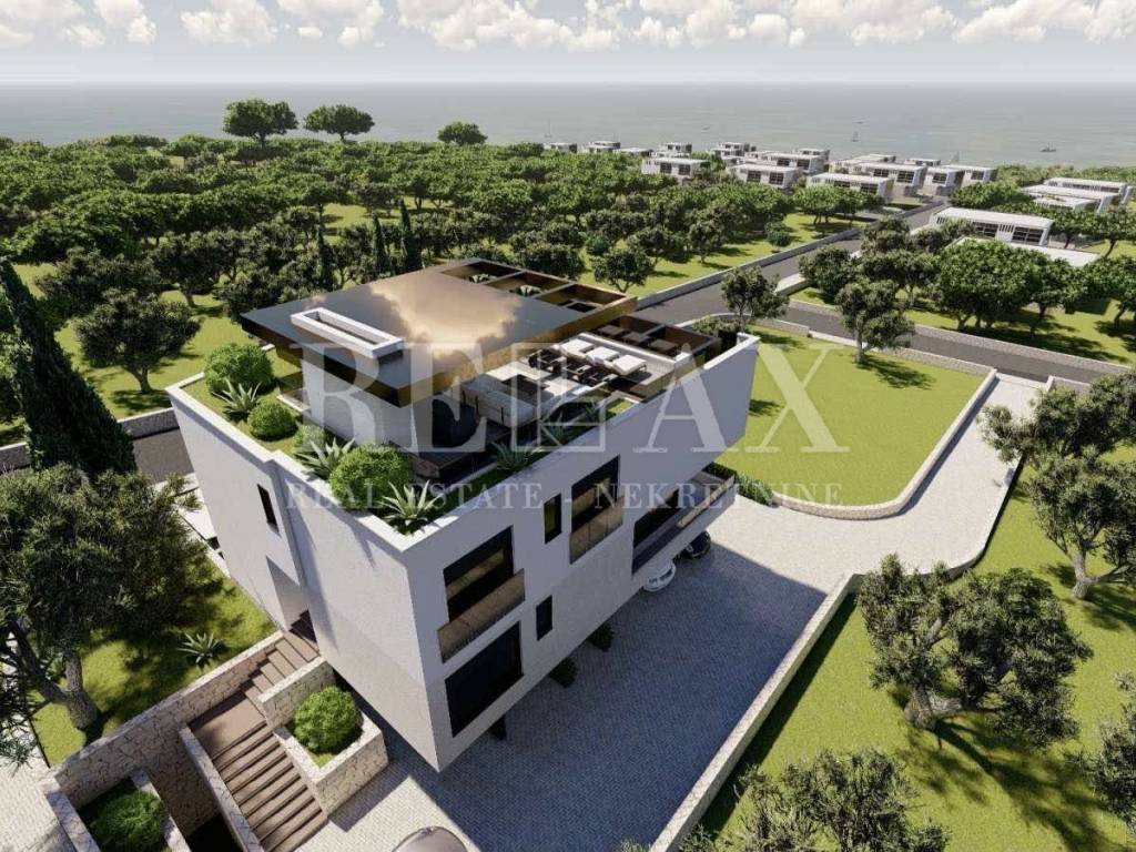 The luxurious penthouse with a roof terrace is located in a modern building with only four residential units in Krk.