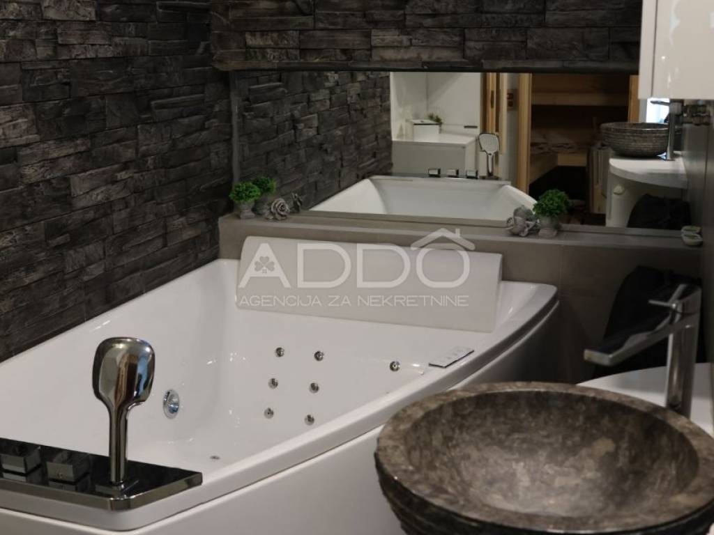 This apartment offers a private wellness corner for complete relaxation and escape from everyday life, a luxurious jacuzzi, a modern sauna.