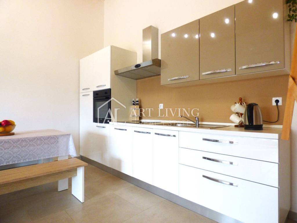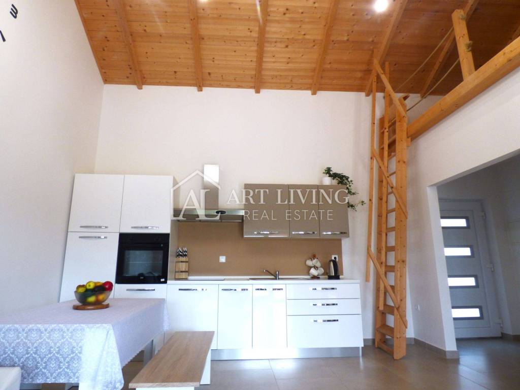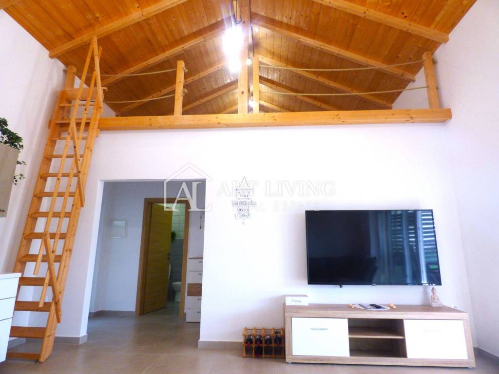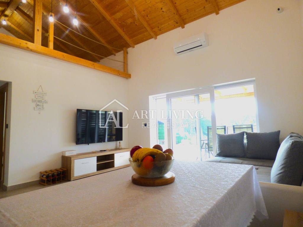 PROPERTY CHARACTERISTICS Beautiful attic Covered barbecue area Air conditioning Peaceful surrounding Arranged garden Garden house 12 m2 2.5 km from the sea 5 km from the city of Umag